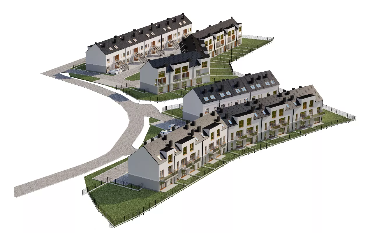 Wielkość Projektu: Inwestycja składa się z 42 apartamentów w zabudowie szeregowej.