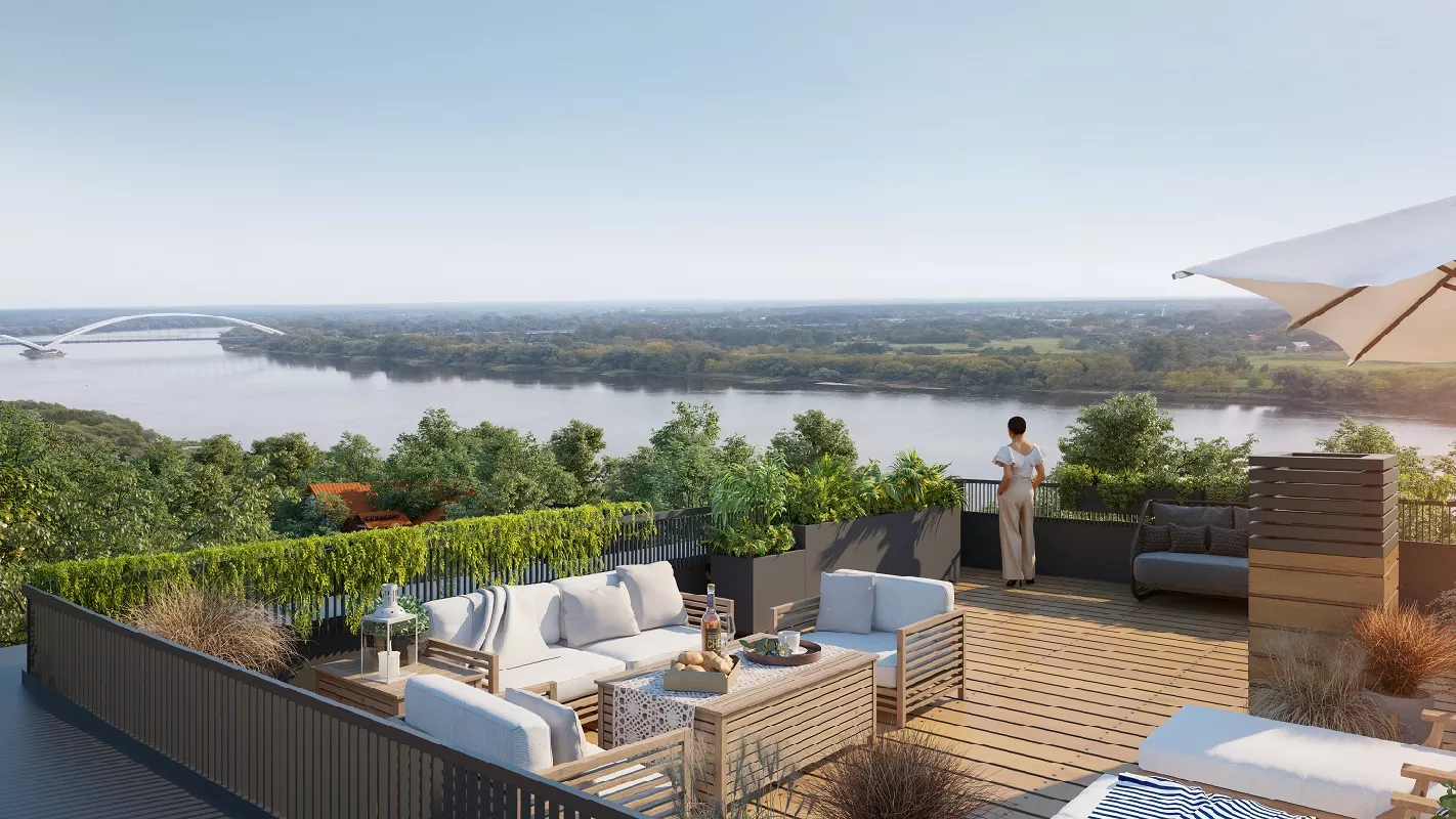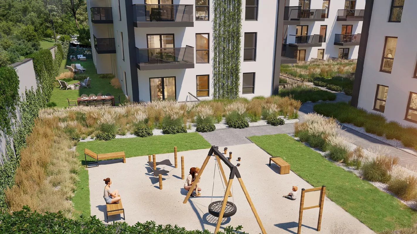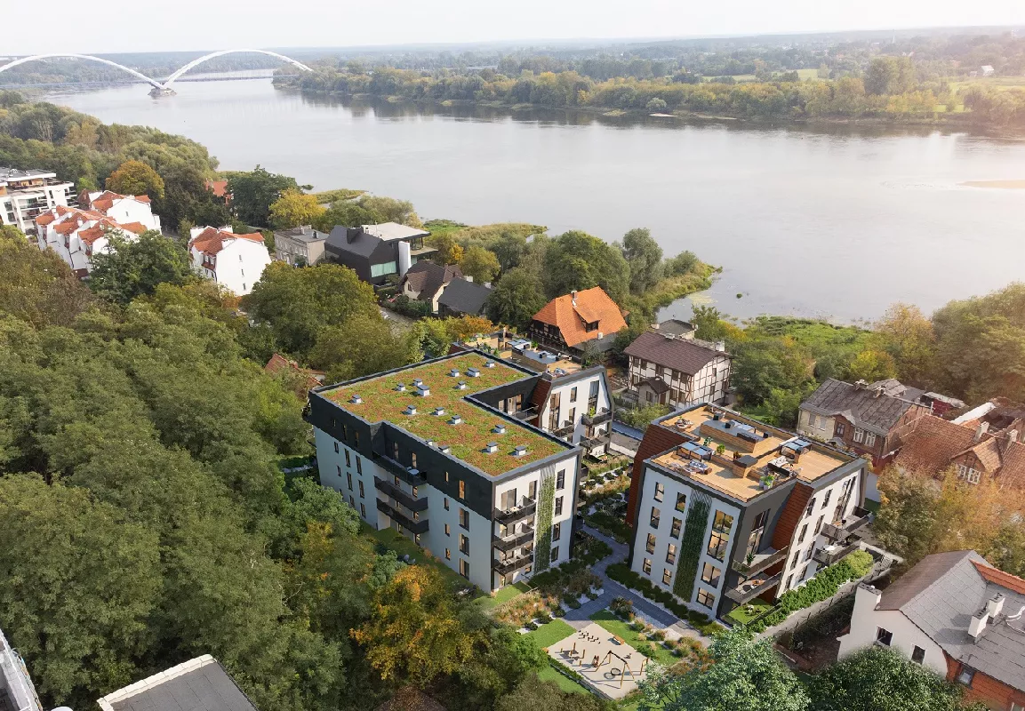 Udogodnienia: Kameralne osiedle w niewielkiej odległości od centrum, winda, tereny zielone, blisko komunikacji miejskiej, plac zabaw, rowerownia, system smart home w standardzie, mieszkania z widokiem na Wisłę.