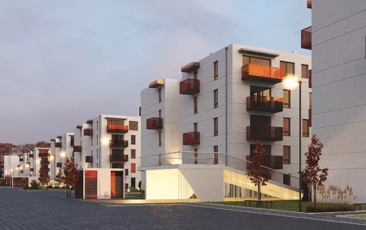 Udogodnienia: kameralna zabudowa, wysoki standard wykończenia, winda, dużo zieleni z małą architekturą; pełny dostęp do miejskiej infrastruktury