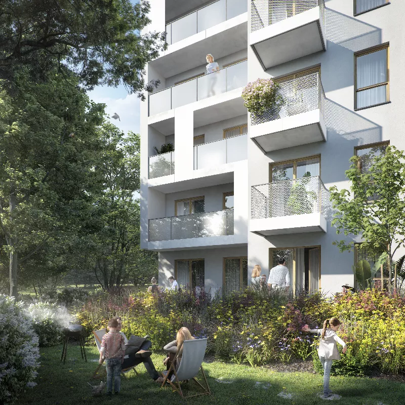 Przynależności: Każde mieszkanie posiada balkon lub ogród. Deweloper przewidział również komórki lokatorskie.