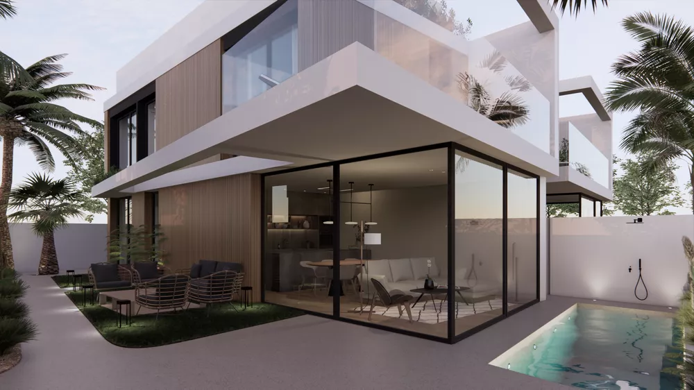 Opis: Cztery piękne, nowoczesne wille 450 m od morza. Położone na działkach o powierzchni 200 m2, każda ma 3 sypialnie i 3 łazienki, prywatny basen, ogród i miejsce parkingowe na posesji oraz tarasy w tym ponad 40 m2 tarasu dachowego tzw. "solarium". Kuchnie i łazienki w pełni umeblowane i wyposażone, klimatyzacja kanałowa. Bardzo wysoki standard materiałów i wykończenia. W najbliższej okolicy znajdują się wszystkie niezbędne usługi: sklepy, bary, restauracje, parki, place zabaw, przystań jachtowa, centrum sportu. Torre de la Horadada stwarza idealne warunki do przyjemnego plażowania jak i aktywnego wypoczynku.