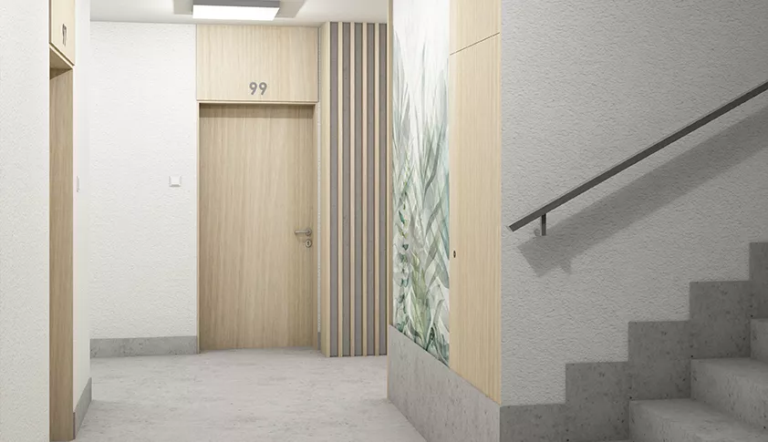 Udogodnienia: winda, tereny zielone wokół inwestycji, blisko komunikacji miejskiej i centrum miasta, stacja dla rowerów i ładowania elektrycznych pojazdów, spokojna okolica