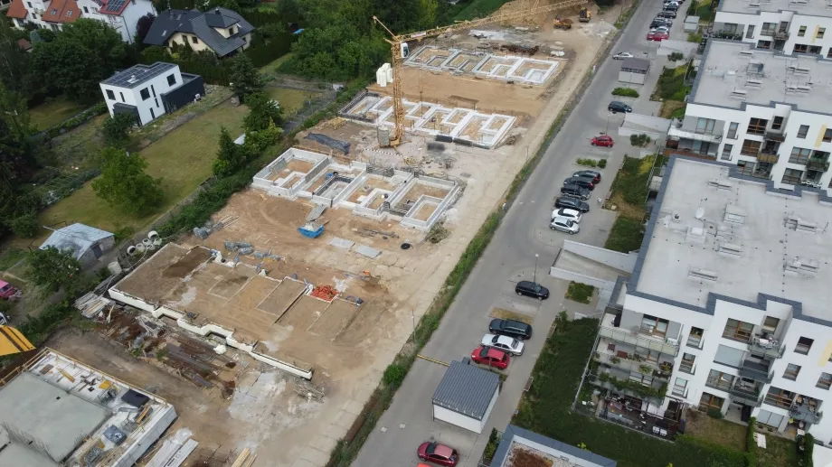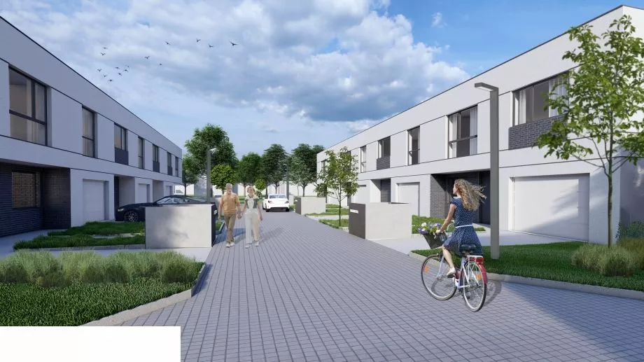 Garaże: Deweloper przewidział miejsce garażowe w każdym domu oraz dodatkowe miejsca parkingowe przy niektórych domach