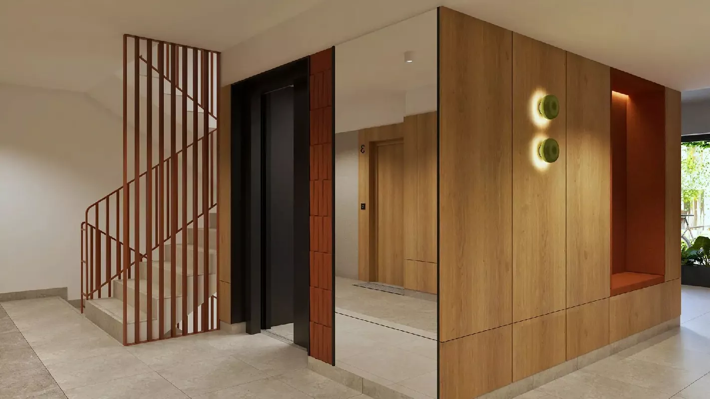 Bezpieczeństwo: Drzwi antywłamaniowe o podwyższonej izolacji akustycznej. Wideodomofony, monitoring zewnętrzny i hali garażowej..