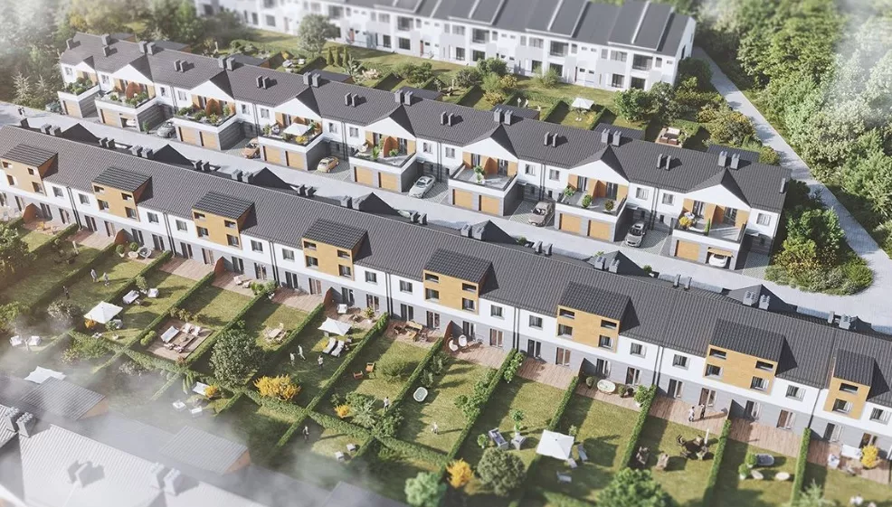 Przynależności: Każdy dom posiada taras i ogród.