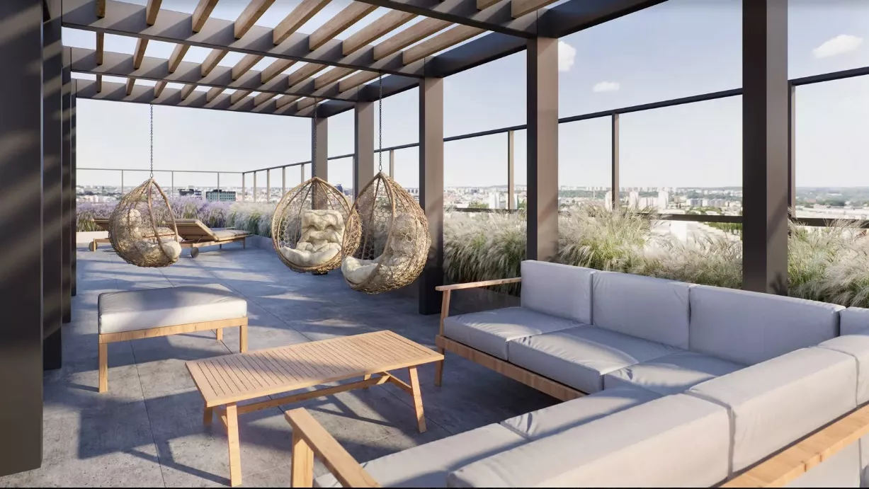 Udogodnienia: windy, nowoczesna architektura, wysoki standard wykończenia, taras widokowy na dachu, zielone tereny, plac zabaw dla dzieci, doskonała lokalizacja