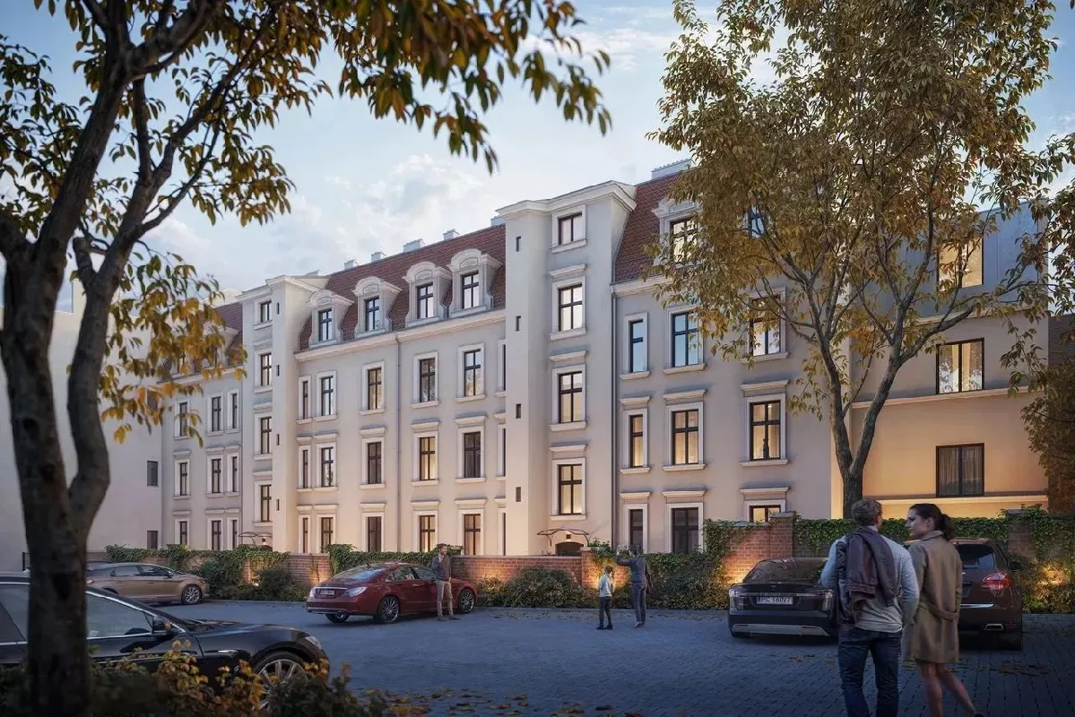 Udogodnienia: nowoczesne apartamenty, eleganckie części wspólne, cicha winda, pakiet pod klucz, architektura w stylu klasycystycznym, sauna, siłownia, rowerownia, prestiżowa lokalizacja, łatwy dostęp do miejskich udogodnień