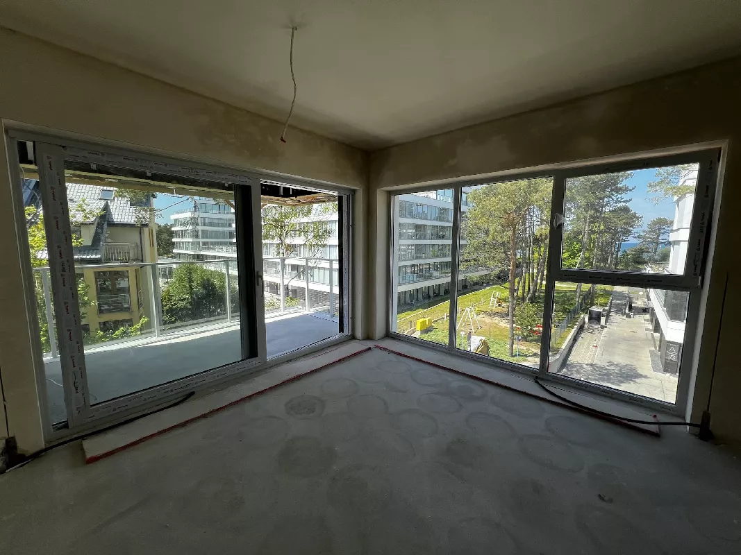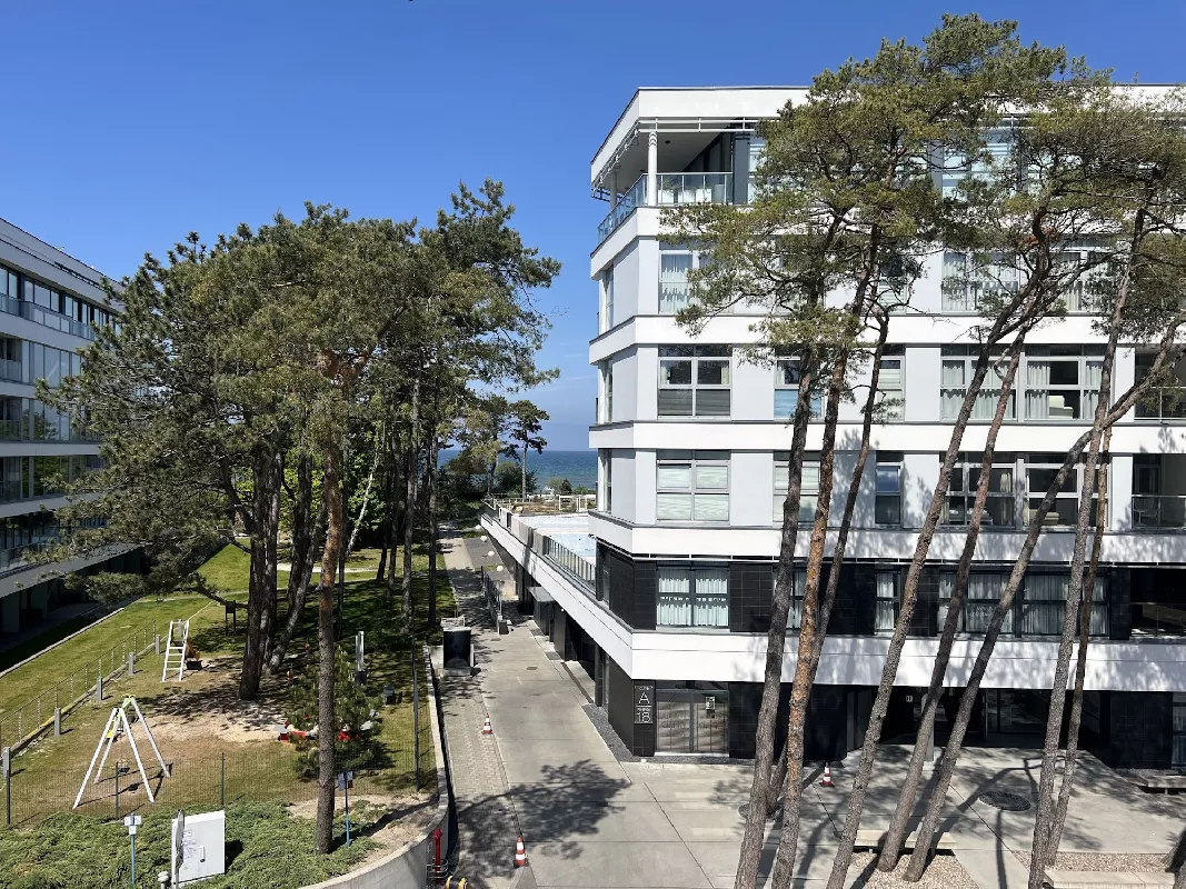 Udogodnienia: nowoczesne budownictwo, panoramiczne okna, jasna i otwarta przestrzeń, zielone otoczenie, sąsiedztwo nadmorskiej promenady, blisko centrum, spokojna okolica, możliwość instalacji jacuzzi na tarasie wybranych apartamentów