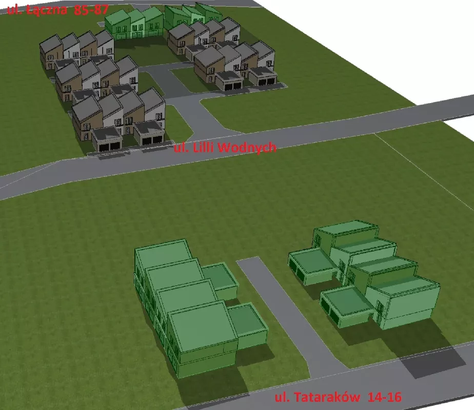 Wielkość Projektu: Inwestycja składa się z 24 budynków w zabudowie bliźniaczej,