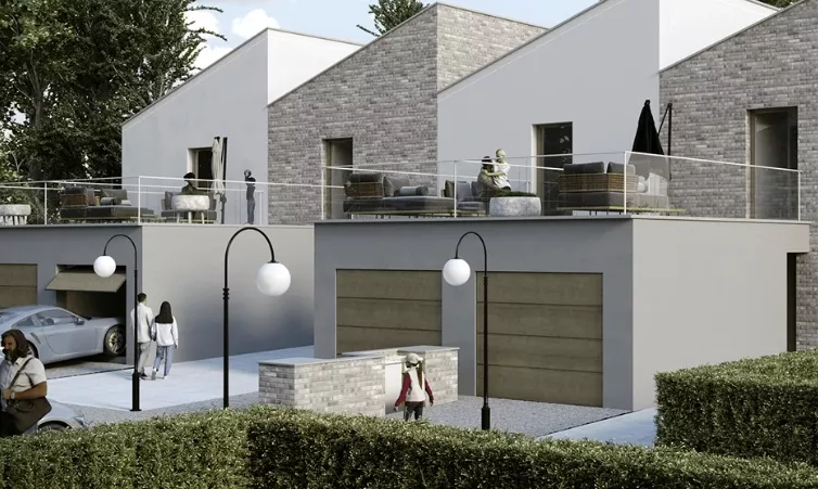 Przynależności: Każde mieszkanie posiada ogródek, rolety zewnętrzne, klimatyzację. Nad garażami taras.