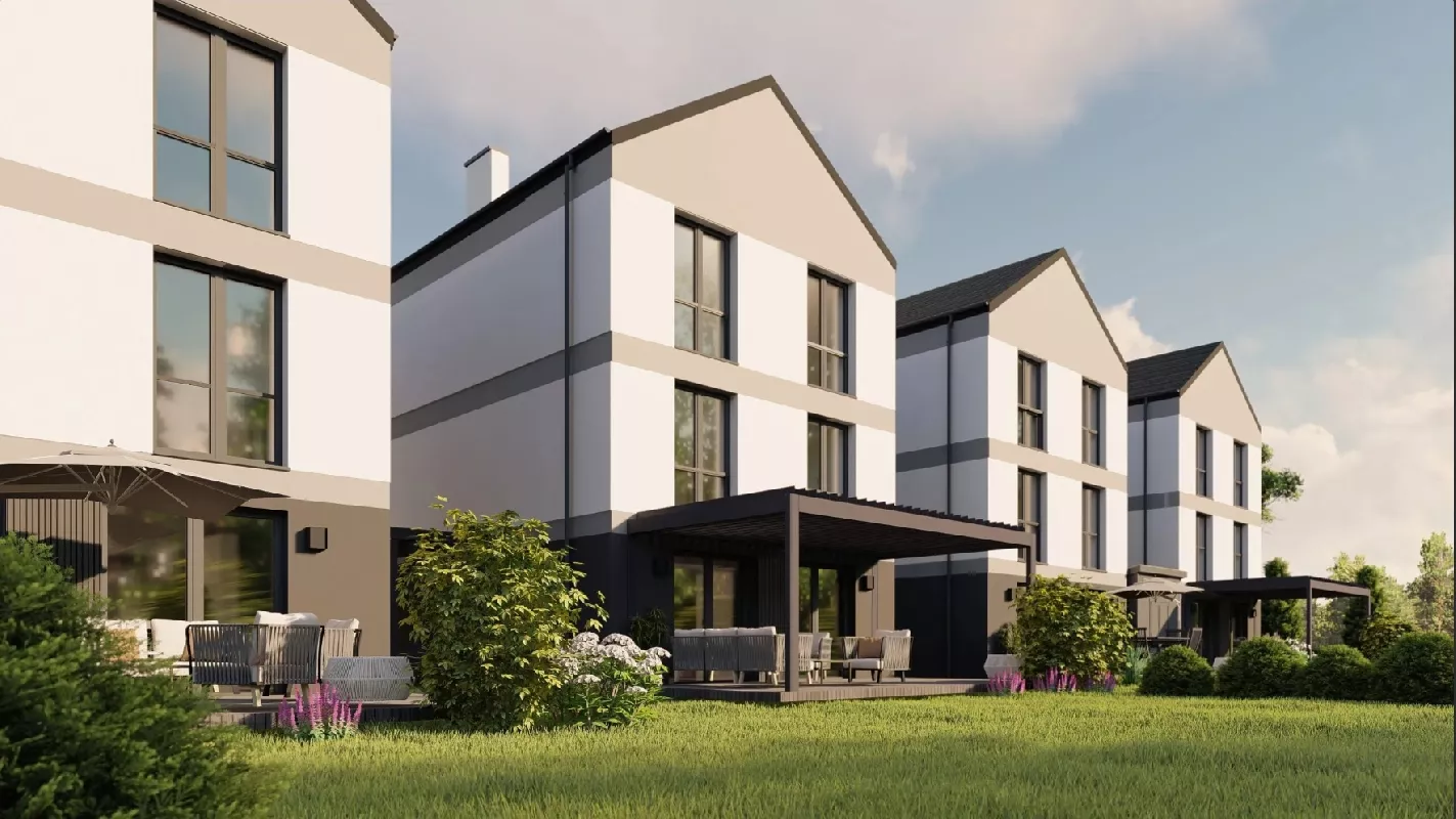 Opis: Osiedle znajduje się we wschodniej części Osielska. Jest to kameralne osiedle 4 nowoczesnych niskoenergetycznych domów Villa Modern, do którego prowadzi oświetlona asfaltowa droga. Każdy dom posiada jedno mieszkanie -