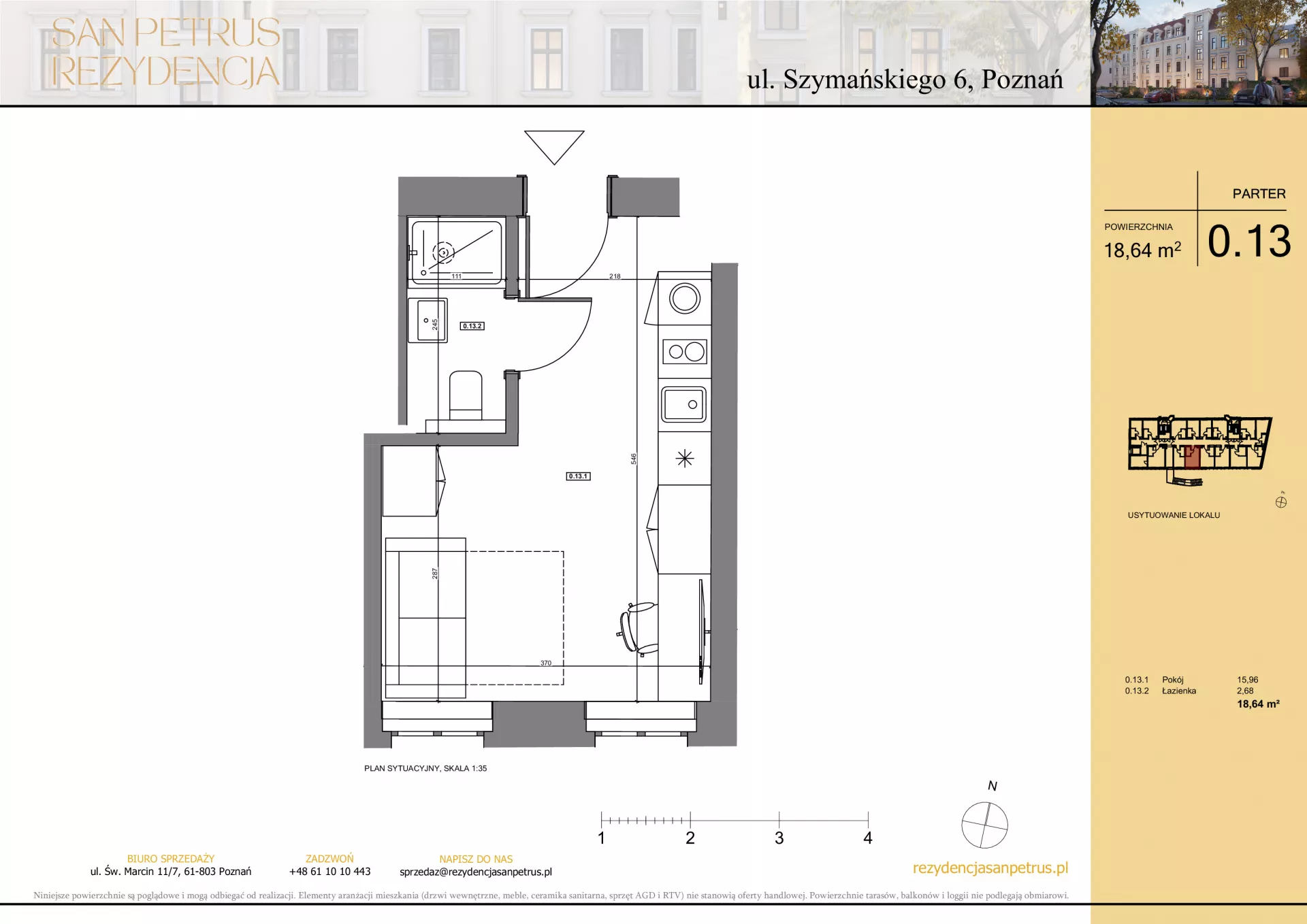 Udogodnienia: nowoczesne apartamenty, eleganckie części wspólne, cicha winda, pakiet pod klucz, architektura w stylu klasycystycznym, sauna, siłownia, rowerownia, prestiżowa lokalizacja, łatwy dostęp do miejskich udogodnień Bezpieczeństwo: teren ogrodzony Wielkość Projektu: 78 lokali inwestycyjnych Garaże: Na terenie inwestycji będą dostępne miesca postojowe naziemne i garażowe Komunikacja: W pobliżu inwestycji znajdują się przystanki autobusowe i tramwajowe oraz stacja kolejowa Odległość od Centrum: Inwestycja znajduje się w centrum miasta