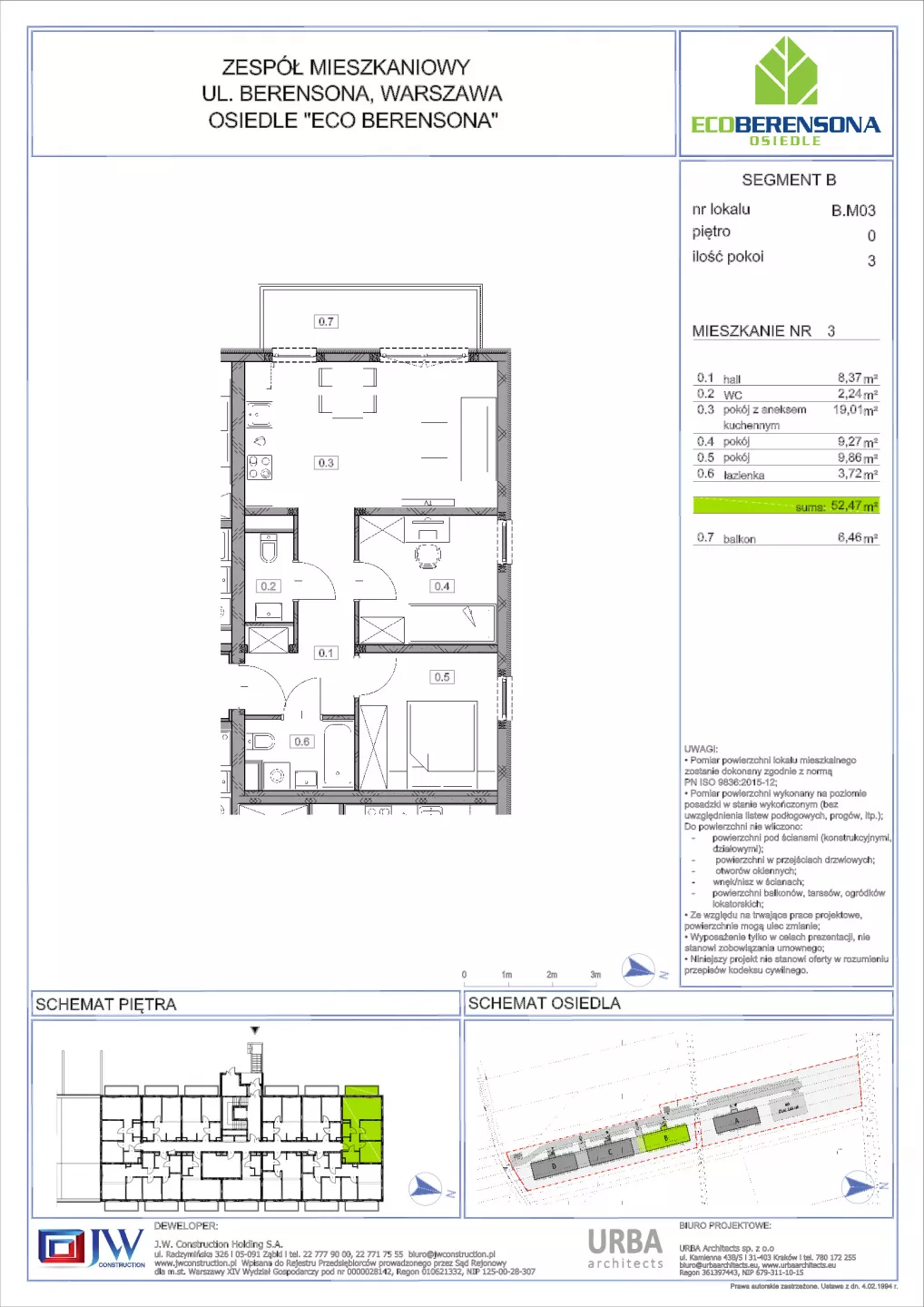 Udogodnienia: tereny zielone wokół inwestycji - w pobliżu inwestycji znajduje się mała retencja, winda, nowoczesna architektura, blisko do komunikacji miejskiej, dostosowania dla osób z niepełnosprawnościami, plac zabaw dla dzieci, zorganizowany teren rekreacyjny z ławkami