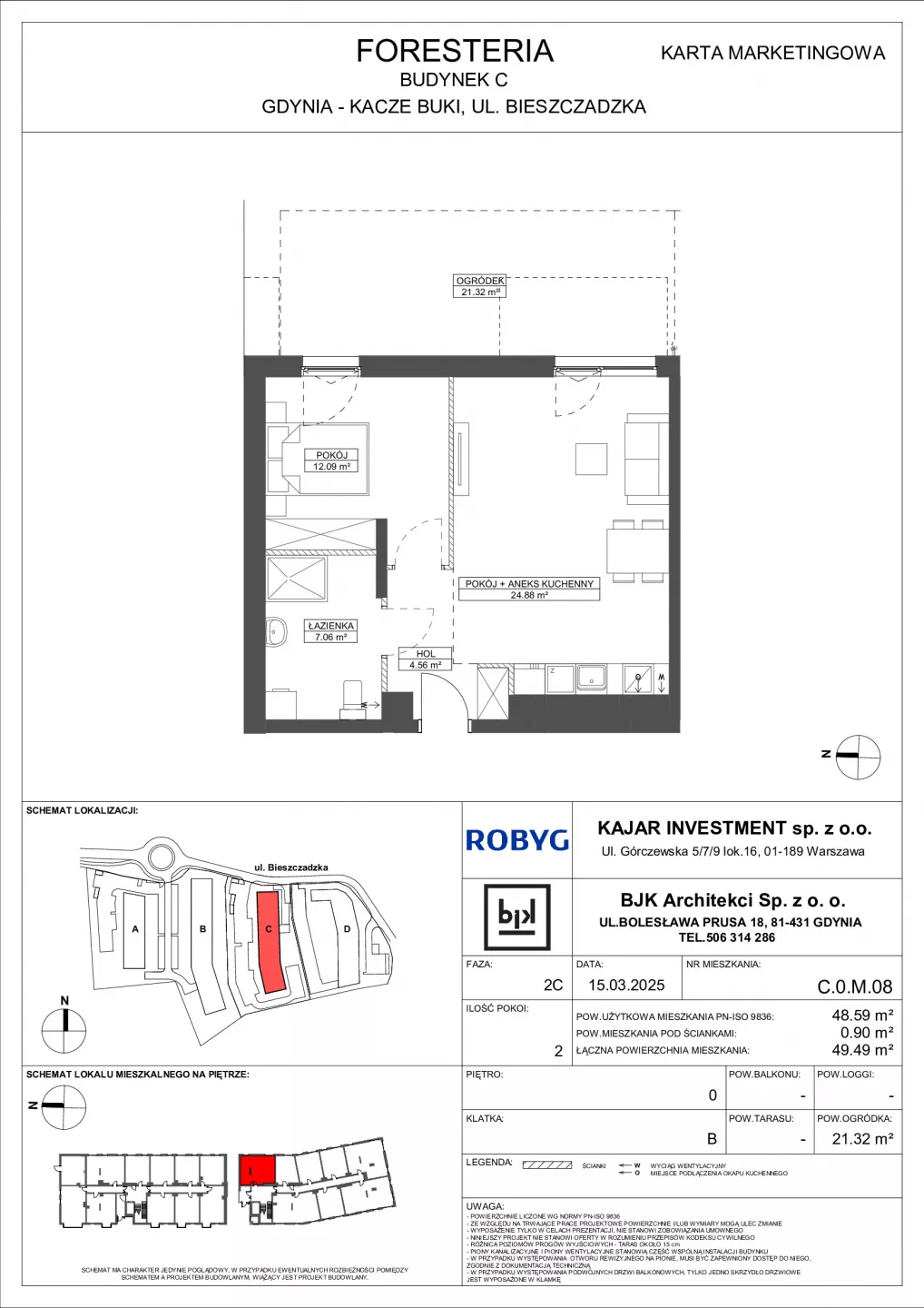 MAKIETY 3D: https: //3destate.app/robyg/ Udogodnienia: nowoczesne architektura, zielona przestrzeń, mała architektura, pakiet SmartHome, wielofunkcyjne osiedle, doskonałe skomunikowanie z centrum, spokojna okolica Przynależności: ogród, taras, balkon Bezpieczeństwo: drzwi antywłamaniowe, monitoring, wideodomofon Wielkość Projektu: 127 mieszkań Garaże: Na terenie inwestycji powstanie 50 miejsc garażowych i 53 miejsc naziemnych Komunikacja: w pobliżu znajduje się obwodnica, droga ekspresowa S6 i przystanki autobusowe Odległość od Centrum: 12,7 km