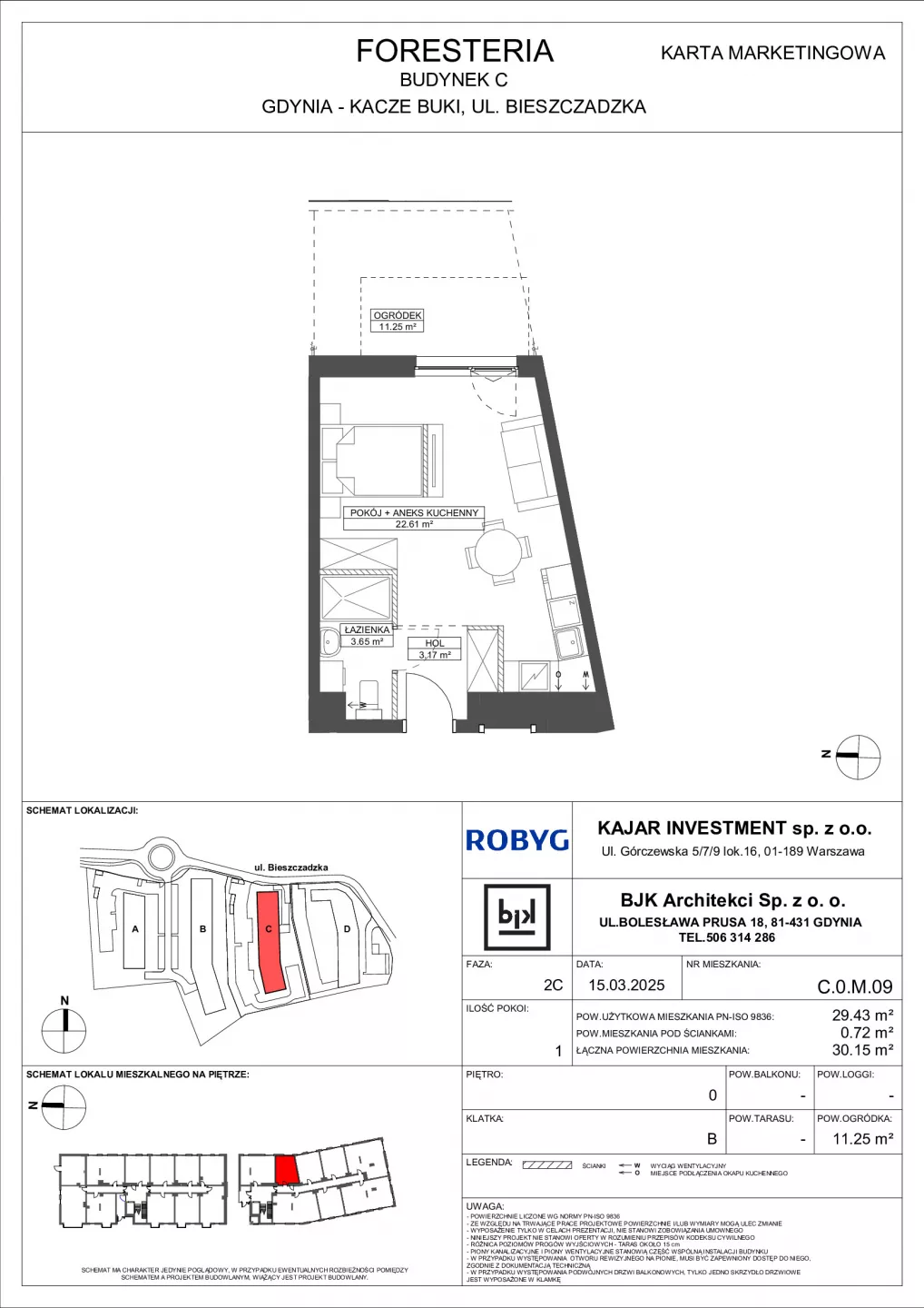 MAKIETY 3D: https: //3destate.app/robyg/ Udogodnienia: nowoczesne architektura, zielona przestrzeń, mała architektura, pakiet SmartHome, wielofunkcyjne osiedle, doskonałe skomunikowanie z centrum, spokojna okolica Przynależności: ogród, taras, balkon Bezpieczeństwo: drzwi antywłamaniowe, monitoring, wideodomofon Wielkość Projektu: 127 mieszkań Garaże: Na terenie inwestycji powstanie 50 miejsc garażowych i 53 miejsc naziemnych Komunikacja: w pobliżu znajduje się obwodnica, droga ekspresowa S6 i przystanki autobusowe Odległość od Centrum: 12,7 km