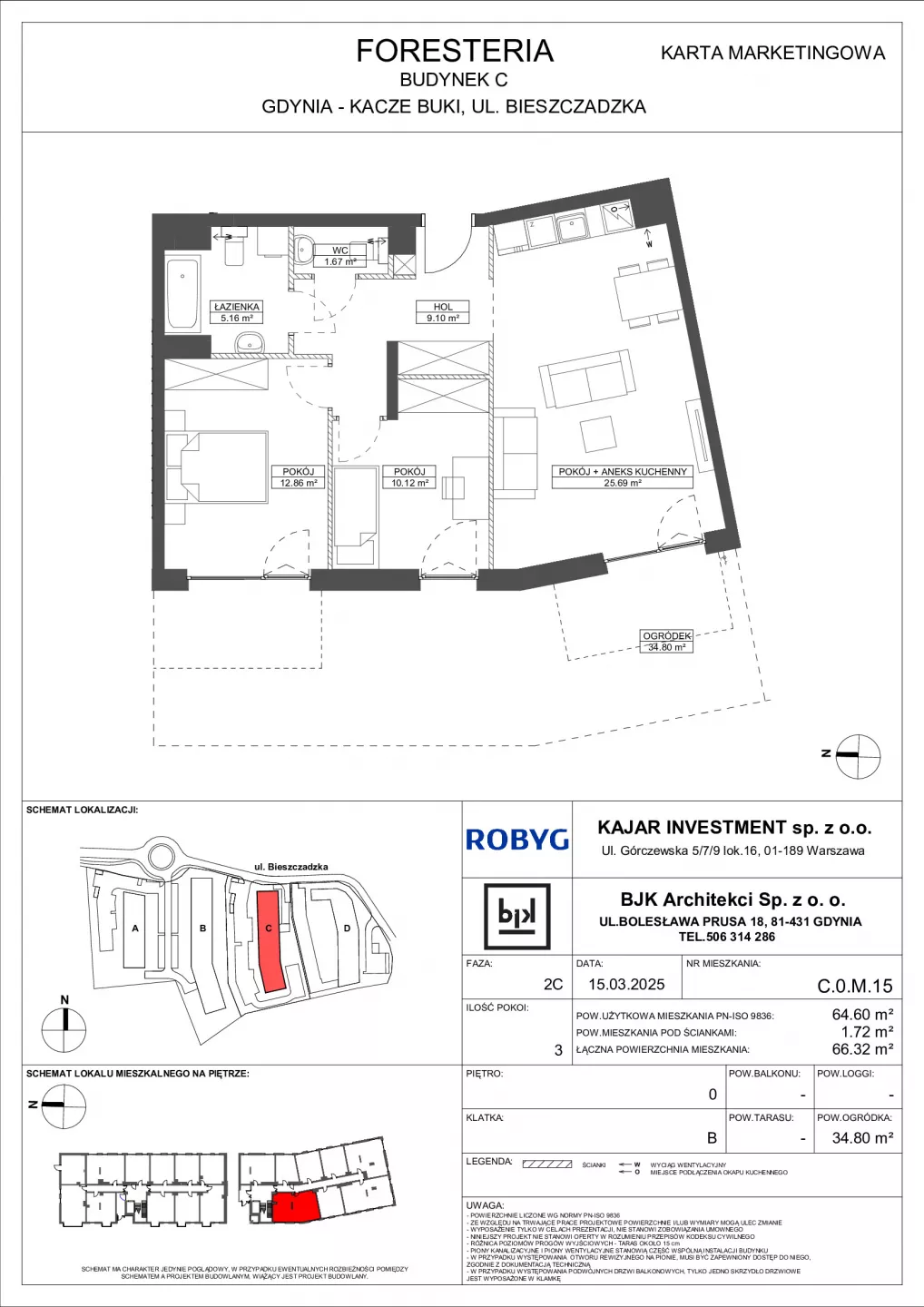 MAKIETY 3D: https: //3destate.app/robyg/ Udogodnienia: nowoczesne architektura, zielona przestrzeń, mała architektura, pakiet SmartHome, wielofunkcyjne osiedle, doskonałe skomunikowanie z centrum, spokojna okolica Przynależności: ogród, taras, balkon Bezpieczeństwo: drzwi antywłamaniowe, monitoring, wideodomofon Wielkość Projektu: 127 mieszkań Garaże: Na terenie inwestycji powstanie 50 miejsc garażowych i 53 miejsc naziemnych Komunikacja: w pobliżu znajduje się obwodnica, droga ekspresowa S6 i przystanki autobusowe Odległość od Centrum: 12,7 km