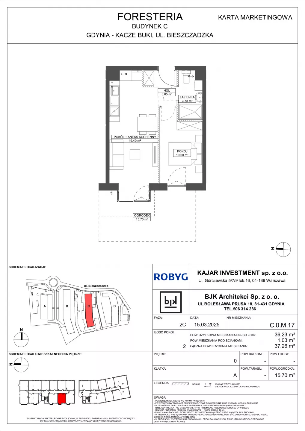MAKIETY 3D: https: //3destate.app/robyg/ Udogodnienia: nowoczesne architektura, zielona przestrzeń, mała architektura, pakiet SmartHome, wielofunkcyjne osiedle, doskonałe skomunikowanie z centrum, spokojna okolica Przynależności: ogród, taras, balkon Bezpieczeństwo: drzwi antywłamaniowe, monitoring, wideodomofon Wielkość Projektu: 127 mieszkań Garaże: Na terenie inwestycji powstanie 50 miejsc garażowych i 53 miejsc naziemnych Komunikacja: w pobliżu znajduje się obwodnica, droga ekspresowa S6 i przystanki autobusowe Odległość od Centrum: 12,7 km