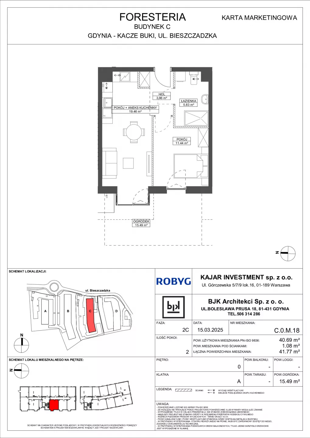 MAKIETY 3D: https: //3destate.app/robyg/ Udogodnienia: nowoczesne architektura, zielona przestrzeń, mała architektura, pakiet SmartHome, wielofunkcyjne osiedle, doskonałe skomunikowanie z centrum, spokojna okolica Przynależności: ogród, taras, balkon Bezpieczeństwo: drzwi antywłamaniowe, monitoring, wideodomofon Wielkość Projektu: 127 mieszkań Garaże: Na terenie inwestycji powstanie 50 miejsc garażowych i 53 miejsc naziemnych Komunikacja: w pobliżu znajduje się obwodnica, droga ekspresowa S6 i przystanki autobusowe Odległość od Centrum: 12,7 km
