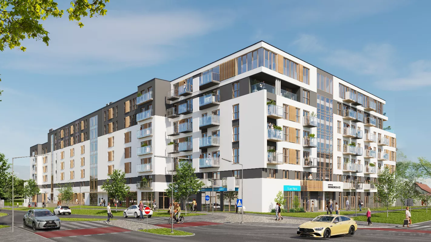 Udogodnienia: winda; tereny zielone; blisko komunikacji miejskiej; nowoczesna architektura; wysoki standard inwestycji; dogodny dostęp do infrastruktury miasta - w pobliżu znajduje się rozbudowana strefa gastronomiczna oraz usługowa Przynależności: ogród, balkon, komórka lokatorska Bezpieczeństwo: drzwi antywłamaniowe Wielkość Projektu: 368 mieszkań Garaże: Deweloper przewidział podziemny garaż do dyspozycji mieszkańców Komunikacja: autobus 110 m, tramwaj 210 m Odległość od Centrum: 6,5 km