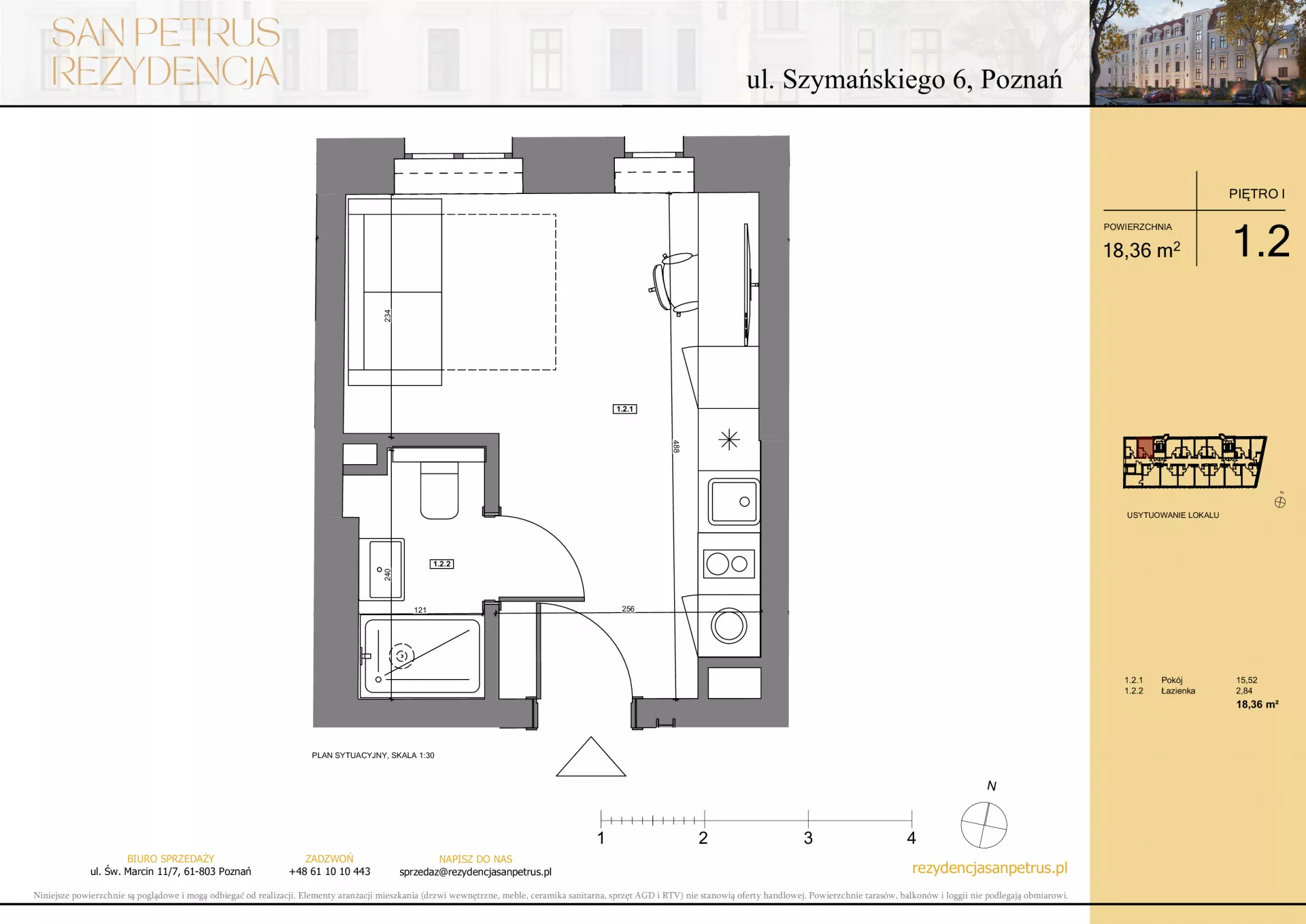 Udogodnienia: nowoczesne apartamenty, eleganckie części wspólne, cicha winda, pakiet pod klucz, architektura w stylu klasycystycznym, sauna, siłownia, rowerownia, prestiżowa lokalizacja, łatwy dostęp do miejskich udogodnień Bezpieczeństwo: teren ogrodzony Wielkość Projektu: 78 lokali inwestycyjnych Garaże: Na terenie inwestycji będą dostępne miesca postojowe naziemne i garażowe Komunikacja: W pobliżu inwestycji znajdują się przystanki autobusowe i tramwajowe oraz stacja kolejowa Odległość od Centrum: Inwestycja znajduje się w centrum miasta