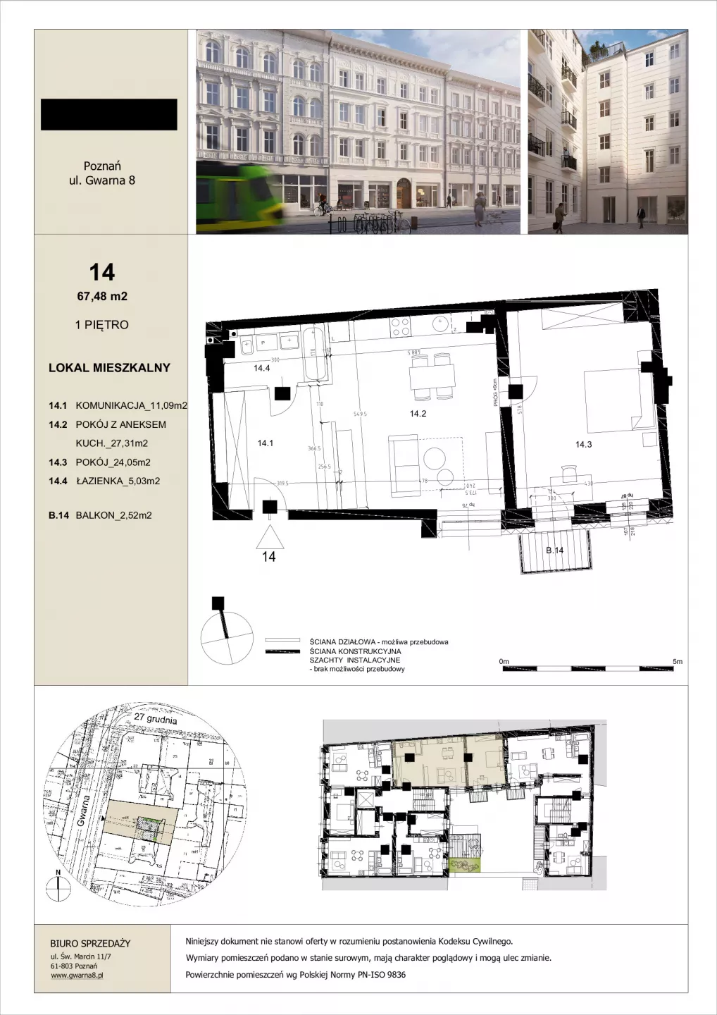 Udogodnienia: winda, blisko komunikacji i centrum, tereny zielone - w pobliżu Park Mickiewicza i Ogród Zamkowy im. Ofiar Katynia i Sybiru, w okolicy znajdują się takie uczelnie jak Uniwersytet im. Adama Mickiewicza czy Uniwersytet Ekonomiczny; Teatr Polski oraz rozbudowana strefa gastronomiczna Przynależności: taras, balkon Wielkość Projektu: 25 mieszkań Komunikacja: tramwaj 300 m, autobus 450 m Odległość od Centrum: Inwestycja znajduje się w centrum miasta