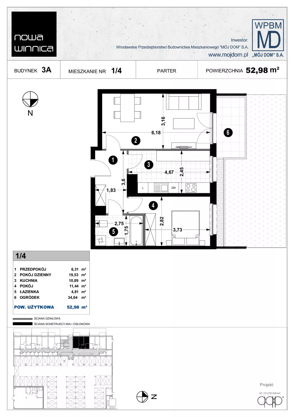 Udogodnienia: W pobliżu inwestycji znajdują się tereny zielone, plac zabaw, obiekty sportowe, stojaki na rowery. Przynależności: Każde mieszkanie posiada balkon lub ogródek. Bezpieczeństwo: Domofon. Wielkość Projektu: Inwestycja posiada 52 mieszkań. Garaże: W inwestycji będą dostępne miejsca postojowe. Komunikacja: 1,7km stacja PKP Odległość od Centrum: 28km.