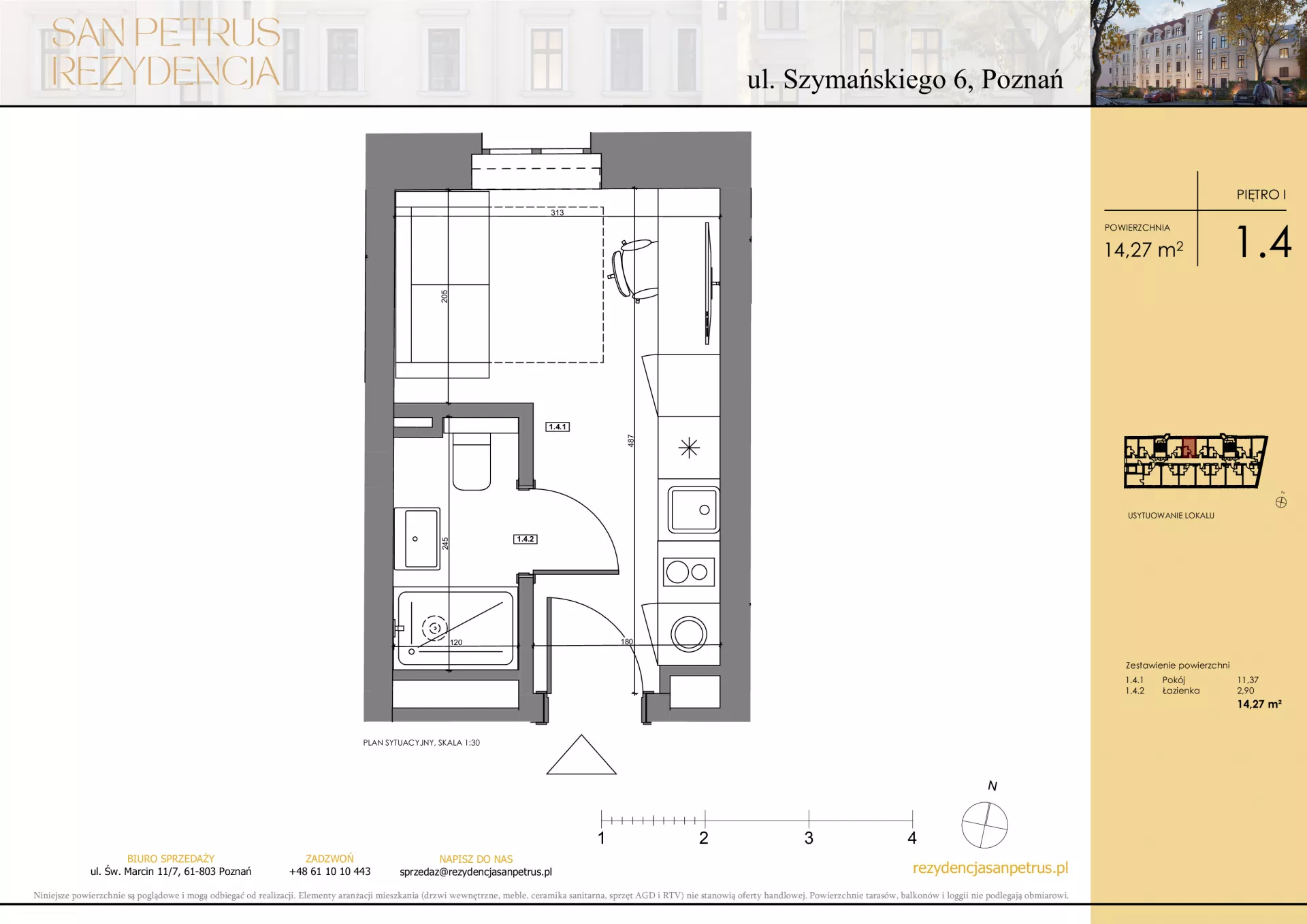 Udogodnienia: nowoczesne apartamenty, eleganckie części wspólne, cicha winda, pakiet pod klucz, architektura w stylu klasycystycznym, sauna, siłownia, rowerownia, prestiżowa lokalizacja, łatwy dostęp do miejskich udogodnień Bezpieczeństwo: teren ogrodzony Wielkość Projektu: 78 lokali inwestycyjnych Garaże: Na terenie inwestycji będą dostępne miesca postojowe naziemne i garażowe Komunikacja: W pobliżu inwestycji znajdują się przystanki autobusowe i tramwajowe oraz stacja kolejowa Odległość od Centrum: Inwestycja znajduje się w centrum miasta