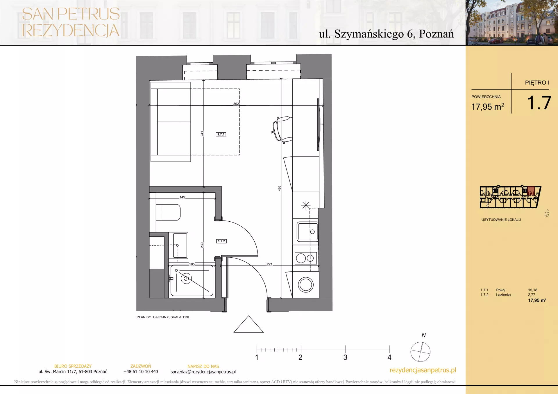 Udogodnienia: nowoczesne apartamenty, eleganckie części wspólne, cicha winda, pakiet pod klucz, architektura w stylu klasycystycznym, sauna, siłownia, rowerownia, prestiżowa lokalizacja, łatwy dostęp do miejskich udogodnień Bezpieczeństwo: teren ogrodzony Wielkość Projektu: 78 lokali inwestycyjnych Garaże: Na terenie inwestycji będą dostępne miesca postojowe naziemne i garażowe Komunikacja: W pobliżu inwestycji znajdują się przystanki autobusowe i tramwajowe oraz stacja kolejowa Odległość od Centrum: Inwestycja znajduje się w centrum miasta