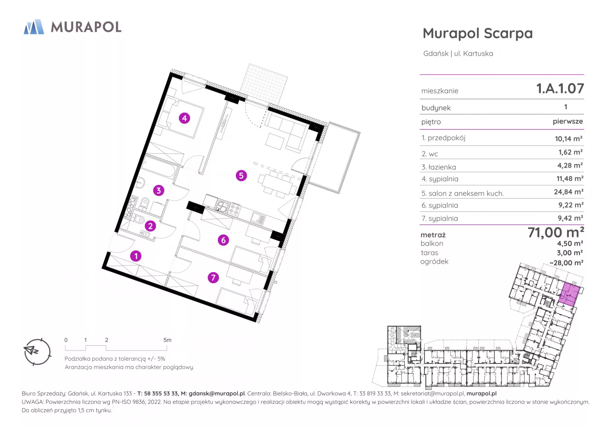 Udogodnienia: blisko centrum; dogodny dostęp do miejskiej komunikacji; pakiet antysmogowy; smart home; w pobliżu inwestycji znajduje się galeria handlowa Forum Gdańsk, Galeria Morena oraz liczne punkty usługowo-handlowe i gastronomiczne; w okolicy znajdują się liczne atrakcje turystyczne jak Fontanna Neptuna czy Muzeum II Wojny Światowej; 20 minut drogi do plaży w Stogach Przynależności: taras, ogródek, balkon, miejsce postojowe Wielkość Projektu: 282 mieszkań Garaże: Deweloper przewidział na terenie inwestycji miejsca postojowe w hali garażowej dla mieszkańców inwestycji. Komunikacja: tramwaj i autobus 150 m Odległość od Centrum: 8 km