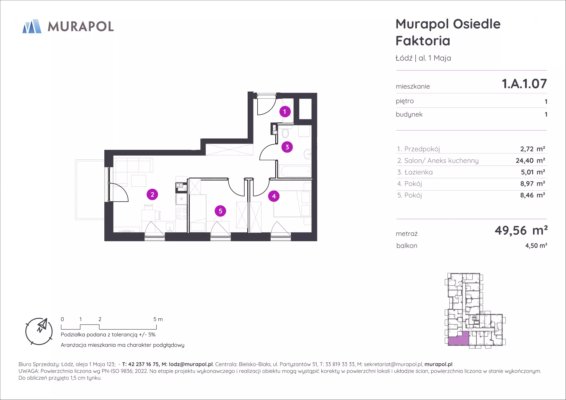Osiedle zostało zaprojektowane na zacisznym skraju Starego Polesia, w pobliżu zielonego kampusu Uniwersytetu Medycznego i największego w mieście Parku na Zdrowiu. Z inwestycją sąsiaduje dawna zabudowa Zakładów Przemysłu Wełnianego „Wiosna Ludów”, które w XX w. wraz z resztą łódzkich fabryk tworzyła potęgę miasta jako wielkiego ośrodka przemysłu włókienniczego w Europie. Po dziś dzień u stóp inwestycji, wzdłuż alei 1 Maja rośnie szpaler kasztanowców upamiętniających ten okres. Osiedle będzie liczyć łącznie 265 kompaktowych lokali mieszkalnych w dwóch 4-piętrowych budynkach wraz z miejscami postojowymi w podziemnych halach garażowych. Oferta mieszkaniowa jest przeznaczona zarówno dla rodzin z dziećmi, par, singli, jak i seniorów. Z uwagi na lokalizację osiedla oraz zróżnicowane układy 1-, 2- lub 3-pokojowych mieszkań to również świetny wybór z punktu widzenia inwestycyjnego.