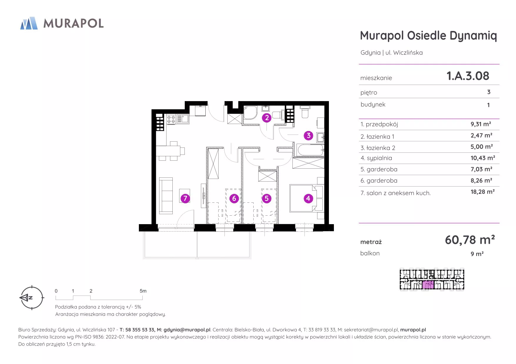 Udogodnienia: nowoczesna architektura, wysoki standard wykończenia, winda, stacja ładowania samochodów elektrycznych, pakiet antysmogowy, smart home, komórki lokatorskie, strefa rekreacyjna z placem zabaw, rowerownie, lokale usługowe na parterze, tereny zielone - Trójmiejski Park Krajobrazowy i Leśny Ogród Botaniczny Marszewo, blisko komunikacji miejskiej i centrum miasta; w pobliżu znajdują się siłownia, klub fitness, Bular Nadmorski, molo i klif w Orłowie, galeria handlowa Riviera oraz centra handlowe Witawa i Parkova Przynależności: balkon, taras z ogródkiem Bezpieczeństwo: drzwi antywłamaniowe, domofon, teren ogrodzony Wielkość Projektu: 228 mieszkań Garaże: Na terenie inwestycji powstaną miejsca postojowe naziemne i podziemne Komunikacja: obok inwestycji znajdują się przystanki autbusowe Odległość od Centrum: 10 km