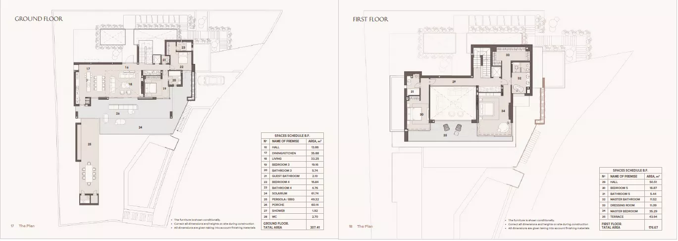 Udogodnienia: Villa Ivory oferuje ekskluzywną prywatność w zamkniętej społeczności z całodobową ochroną. Rezydencja posiada podgrzewany basen z przestronnym tarasem oraz strefę barbecue z pergolą idealną do spotkań towarzyskich. Do dyspozycji mieszkańców jest także przestronne solarium z przepięknymi widokami na morze i góry. Willa została zaprojektowana z wykorzystaniem najlepszych materiałów oraz innowacyjnych rozwiązań architektonicznych, zapewniających komfort na najwyższym poziomie. Dodatkowo każda z sześciu sypialni ma własną luksusową łazienkę.