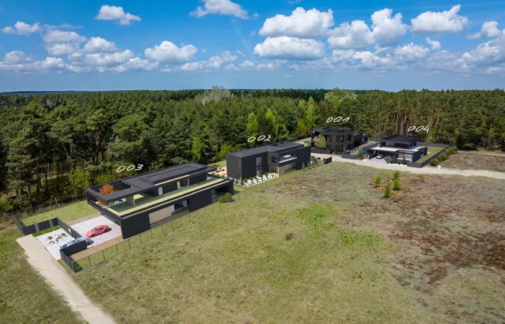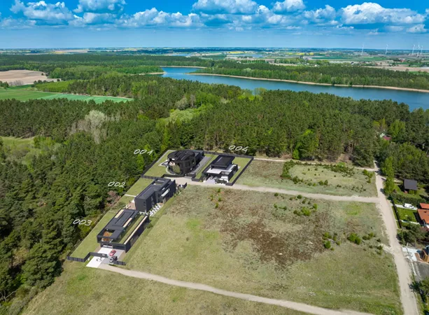 Udogodnienia: Bliskość Jeziora Kamionkowskiego oraz lasu, ścieżki rowerowe i spacerowe, molo z którego można łowić ryby; stół do ping ponga lub bilarda, antresola, która może stać się ulubionym miejscem na czytanie książek zaraz po sesji w saunie; na piętrze - przestronna sypialnia z jacuzzi z widokiem na las lub TV, garderoba oraz dodatkowa łazienka; część dla gości/rodzica/gosposi z własną łazienką; uniezależnienie od wzrostów kosztu prądu i ogrzewania (panele fotowoltaiczne, pompa ciepła i magazyn energii); klimatyzacja Bezpieczeństwo: System alarmowy, drzwi / okna antywłamaniowe, teren zamknięty, domofon / wideofon, monitoring / ochrona, rolety antywłamaniowe. Inteligentny system sterowania i monitoring - z każdego miejsca na świecie. Dom 001: 281 m² / 1.700 m² działka; Dom 002: 263 m² / 1.455 m² działka; Dom 003: 226 m² / 1.468 m² działka; Dom 004: 215 m² / 1.219 m² działka. Garaże: Miejsca w garażu oraz miejsca zewn. Odległość od Centrum: W linii powietrznej to 16 km do Torunia (20 min. samochodem), 136 km do Gdańska, czyli 1 godz. 15 min samochodem i jest się na plaży nad Bałtykiem, czy na gdańskim lotnisku z oknem na cały świat. Obejrzyj lokalizację: youtu.be/9MVONVTTvgQ Uwagi: Ceny w EURO