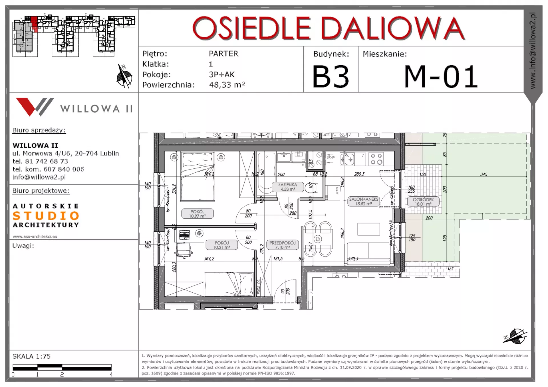 Udogodnienia: nowoczesna inwestycja, winda, wykorzystanie energooszczędnych materiałów, certyfikowany plac zabaw, miejsca postojowe na rowery, tereny zielone, blisko centrum miasta i komunikacji miejskiej; w pobliżu znajdują się sklepy wielometrażowe, galeria Olimp, przedszkole, szkoła podstawowa, punkty gastronomiczne i usługowe, służba zdrowia; spokojna okolica Przynależności: balkon, ogródek, komórka lokatorska Bezpieczeństwo: drzwi antywłamaniowe, wideodomofon Wielkość Projektu: 118 mieszkań Garaże: Na terenie inwestycji powstaje garaż podziemny oraz na ulicy powstaną dodatkowe miejsca postojowe Komunikacja: w pobliżu inwestycji znajduje się sieć przystanków autobusowych Odległość od Centrum: 4 km