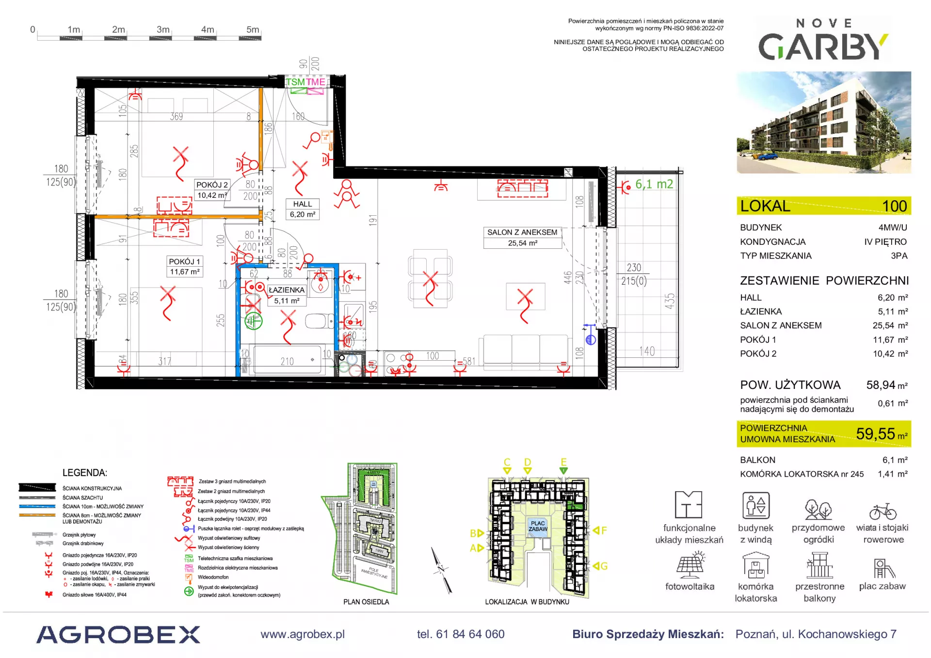 Udogodnienia: plac zabaw, wiaty i stojaki na rowery, dogodnie rozbudowana sieć transportu miejskiego; w okolicy bliskość terenów zielonych - Las przy Swarzędzu, Jezioro Swarzędzkie oraz punktów handlowo-usługowych Przynależności: prywatny ogródek, taras Bezpieczeństwo: domofon Wielkość Projektu: 143 mieszkań Garaże: Deweloper przewidział indywidualne i ogólnodostępne naziemne miejsca postojowe Komunikacja: przystanek autobusowy 2 minuty pieszo od inwestycji Odległość od Centrum: 14,3 km