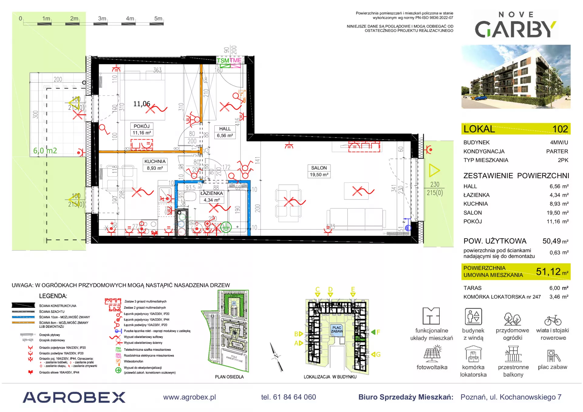 Udogodnienia: plac zabaw, wiaty i stojaki na rowery, dogodnie rozbudowana sieć transportu miejskiego; w okolicy bliskość terenów zielonych - Las przy Swarzędzu, Jezioro Swarzędzkie oraz punktów handlowo-usługowych Przynależności: prywatny ogródek, taras Bezpieczeństwo: domofon Wielkość Projektu: 143 mieszkań Garaże: Deweloper przewidział indywidualne i ogólnodostępne naziemne miejsca postojowe Komunikacja: przystanek autobusowy 2 minuty pieszo od inwestycji Odległość od Centrum: 14,3 km