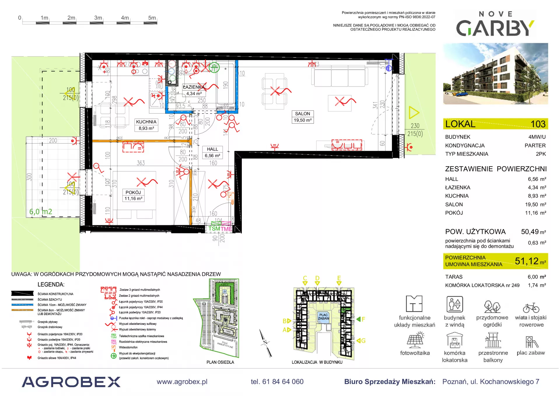 Udogodnienia: plac zabaw, wiaty i stojaki na rowery, dogodnie rozbudowana sieć transportu miejskiego; w okolicy bliskość terenów zielonych - Las przy Swarzędzu, Jezioro Swarzędzkie oraz punktów handlowo-usługowych Przynależności: prywatny ogródek, taras Bezpieczeństwo: domofon Wielkość Projektu: 143 mieszkań Garaże: Deweloper przewidział indywidualne i ogólnodostępne naziemne miejsca postojowe Komunikacja: przystanek autobusowy 2 minuty pieszo od inwestycji Odległość od Centrum: 14,3 km