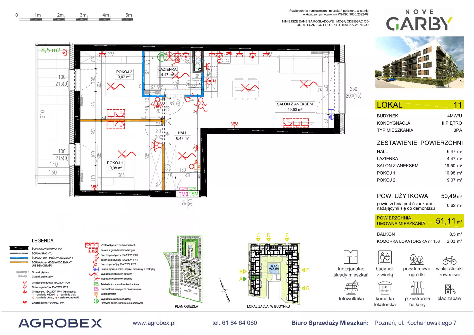 Udogodnienia: plac zabaw, wiaty i stojaki na rowery, dogodnie rozbudowana sieć transportu miejskiego; w okolicy bliskość terenów zielonych - Las przy Swarzędzu, Jezioro Swarzędzkie oraz punktów handlowo-usługowych Przynależności: prywatny ogródek, taras Bezpieczeństwo: domofon Wielkość Projektu: 143 mieszkań Garaże: Deweloper przewidział indywidualne i ogólnodostępne naziemne miejsca postojowe Komunikacja: przystanek autobusowy 2 minuty pieszo od inwestycji Odległość od Centrum: 14,3 km