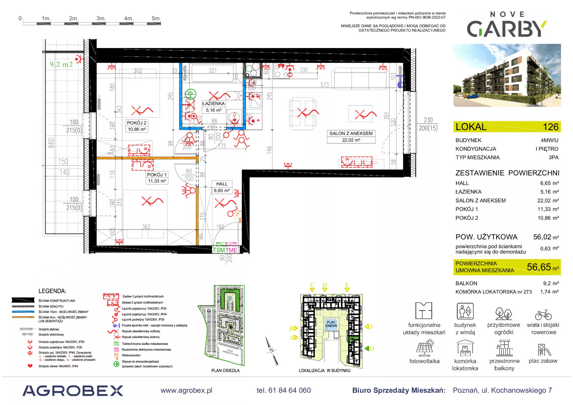 Udogodnienia: plac zabaw, wiaty i stojaki na rowery, dogodnie rozbudowana sieć transportu miejskiego; w okolicy bliskość terenów zielonych - Las przy Swarzędzu, Jezioro Swarzędzkie oraz punktów handlowo-usługowych Przynależności: prywatny ogródek, taras Bezpieczeństwo: domofon Wielkość Projektu: 143 mieszkań Garaże: Deweloper przewidział indywidualne i ogólnodostępne naziemne miejsca postojowe Komunikacja: przystanek autobusowy 2 minuty pieszo od inwestycji Odległość od Centrum: 14,3 km
