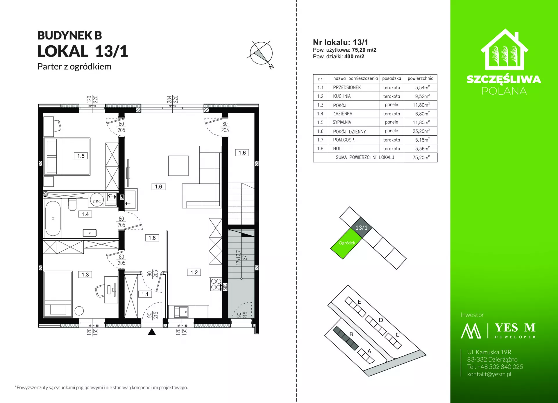 Udogodnienia: nowoczesna inwestycja, energooszczędne rozwiązania, pompy ciepła, rekuperacja, tereny zielone - jeziora, lasy, Kaszubski Park Krajobrazowy; blisko centrum miasta i komunikacji miejskiej, w pobliżu znajdują się market, paczkomat, szkoła podstawowa, przedszkole Przynależności: ogródek Bezpieczeństwo: teren zamknięty Wielkość Projektu: 38 mieszkań Garaże: Na terenie inwestycji znajdują się naziemne miejsca postojowe Komunikacja: Obok inwestycji znajdują się przystanki autobusowe, a 4 minuty drogi od projektu znajduje się stacja kolejowa Odległość od Centrum: Kartuzy - 5,5 km
