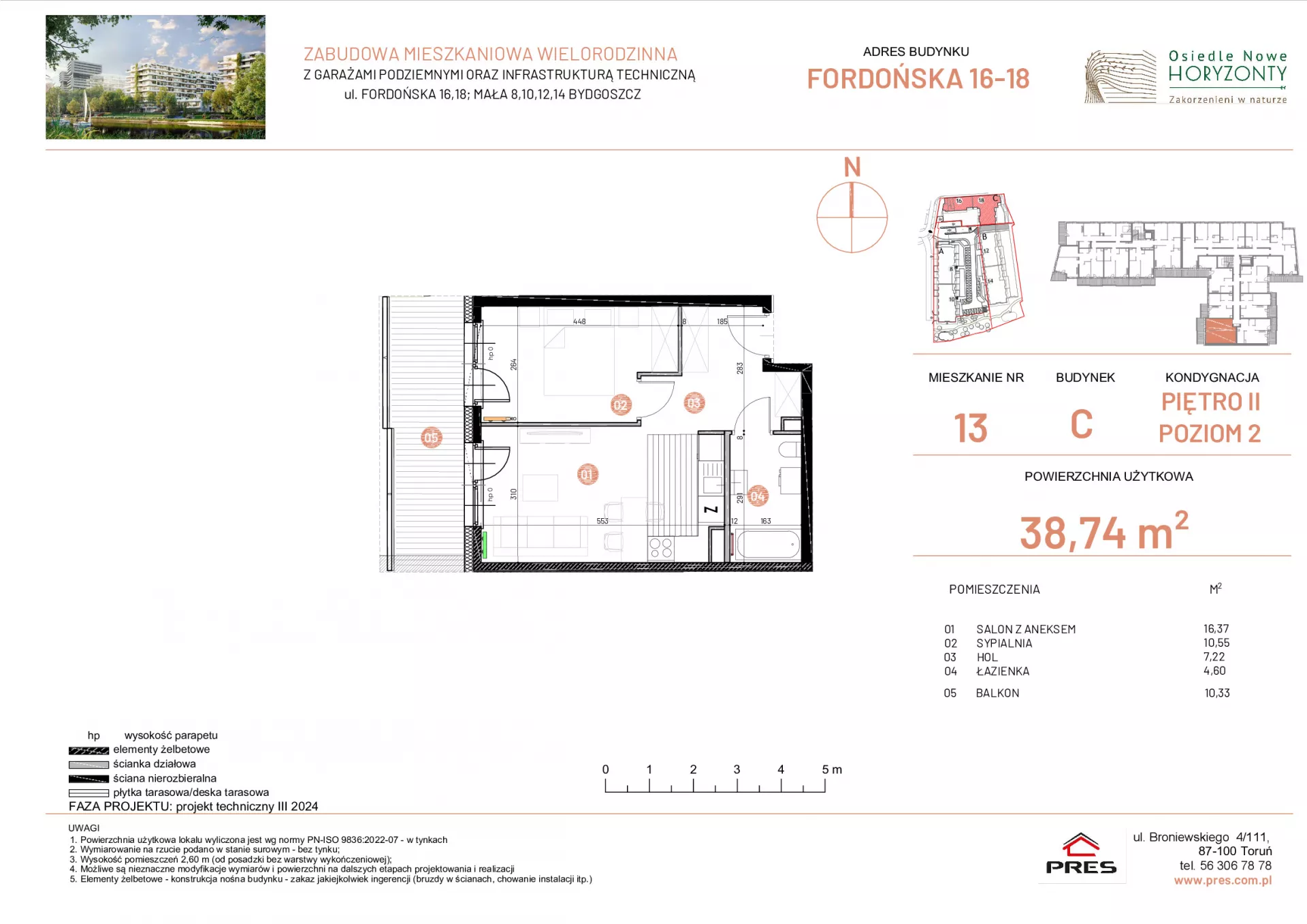Udogodnienia: Nowe Horyzonty to innowacyjne rozwiązania m.in stacja zmiękczania wody, fotowoltaika na dachach zasilająca części wspólne, ekologiczne i automatyczne wykorzystanie wody deszczowej do podlewania, ograniczenie ruchu samochodowego na terenie osiedla (ok. 90% samochodów w halach garażowych podziemnych), stanowisko zewnętrzne do ładowania samochodów elektrycznych oraz możliwość doprowadzenia do każdego stanowiska instalacji do ładowania samochodów. Biedronka po drugiej stronie ulicy 207m, szkoła podstawowa, żłobek, przedszkole, park przy Balatonie, Fabryka Tańca.. Planowane prywatne przedszkole na terenie osiedla. Wyróżnik inwestycji: Lokalizacja blisko zieleni wraz z bulwarem tuż przy rzece Brdzie. Dobra okazja inwestycyjna pod najem długo-, jak i krótkoterminowy. Przynależności: Wózkownie, komórki i schowki. Balkon w każdym mieszkaniu. Tarasy i ogródki. Siłownia na świeżym powietrzu, tężnia solankowa. Docelowo ma być boisko Orlik (koszykówka, piłka nożna).Altany wraz z grillem. Górka saneczkowa. Zielony tunel. Naturalny plac zabaw. Bezpieczeństwo: Drzwi antywłamaniowe o podwyższonej izolacji akustycznej. Wideodomofony, monitoring zewnętrzny i hali garażowej.. Wielkość Projektu: 3 budynki wielorodzinne 7-piętrowe. I etap 149 mieszkań. Komórki lokatorskie. Garaże: Na terenie inwestycji powstaną 32 naziemne i 78 podziemne miejsca postojowe. Komunikacja: W pobliżu projektu znajdują się bardzo blisko przystanki autobusowe i tramwajowe. Dworzec PKS 4km, PKP Bydgoszcz Główna 5,2km Odległość od Centrum: 3,4km (ok. 6min samochodem). Szczegóły: Wysokość pomieszczeń 2,65m. Standard deweloperski.