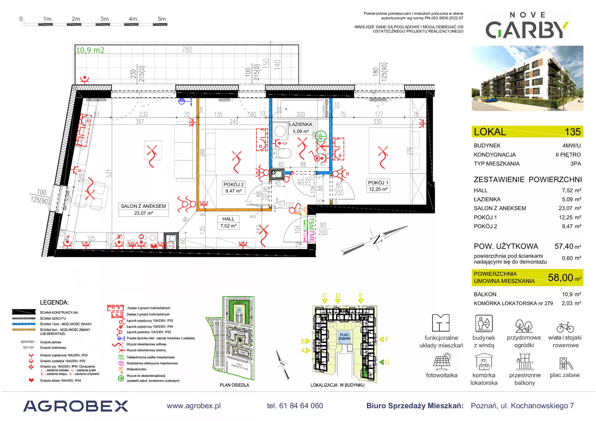 Udogodnienia: plac zabaw, wiaty i stojaki na rowery, dogodnie rozbudowana sieć transportu miejskiego; w okolicy bliskość terenów zielonych - Las przy Swarzędzu, Jezioro Swarzędzkie oraz punktów handlowo-usługowych Przynależności: prywatny ogródek, taras Bezpieczeństwo: domofon Wielkość Projektu: 143 mieszkań Garaże: Deweloper przewidział indywidualne i ogólnodostępne naziemne miejsca postojowe Komunikacja: przystanek autobusowy 2 minuty pieszo od inwestycji Odległość od Centrum: 14,3 km