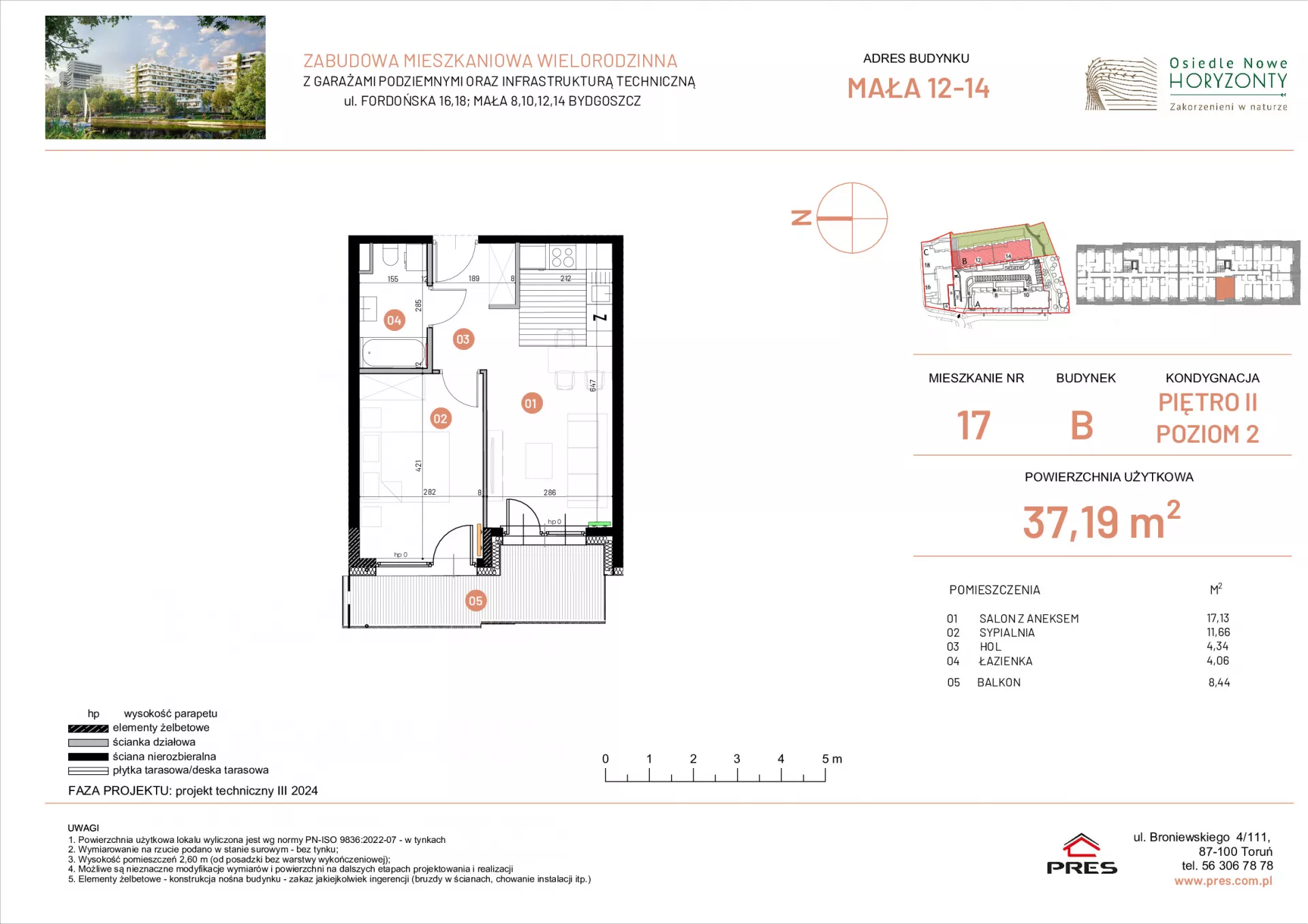 Udogodnienia: Nowe Horyzonty to innowacyjne rozwiązania m.in stacja zmiękczania wody, fotowoltaika na dachach zasilająca części wspólne, ekologiczne i automatyczne wykorzystanie wody deszczowej do podlewania, ograniczenie ruchu samochodowego na terenie osiedla (ok. 90% samochodów w halach garażowych podziemnych), stanowisko zewnętrzne do ładowania samochodów elektrycznych oraz możliwość doprowadzenia do każdego stanowiska instalacji do ładowania samochodów. Biedronka po drugiej stronie ulicy 207m, szkoła podstawowa, żłobek, przedszkole, park przy Balatonie, Fabryka Tańca.. Planowane prywatne przedszkole na terenie osiedla. Wyróżnik inwestycji: Lokalizacja blisko zieleni wraz z bulwarem tuż przy rzece Brdzie. Dobra okazja inwestycyjna pod najem długo-, jak i krótkoterminowy. Przynależności: Wózkownie, komórki i schowki. Balkon w każdym mieszkaniu. Tarasy i ogródki. Siłownia na świeżym powietrzu, tężnia solankowa. Docelowo ma być boisko Orlik (koszykówka, piłka nożna).Altany wraz z grillem. Górka saneczkowa. Zielony tunel. Naturalny plac zabaw. Bezpieczeństwo: Drzwi antywłamaniowe o podwyższonej izolacji akustycznej. Wideodomofony, monitoring zewnętrzny i hali garażowej.. Wielkość Projektu: 3 budynki wielorodzinne 7-piętrowe. I etap 149 mieszkań. Komórki lokatorskie. Garaże: Na terenie inwestycji powstaną 32 naziemne i 78 podziemne miejsca postojowe. Komunikacja: W pobliżu projektu znajdują się bardzo blisko przystanki autobusowe i tramwajowe. Dworzec PKS 4km, PKP Bydgoszcz Główna 5,2km Odległość od Centrum: 3,4km (ok. 6min samochodem). Szczegóły: Wysokość pomieszczeń 2,65m. Standard deweloperski.