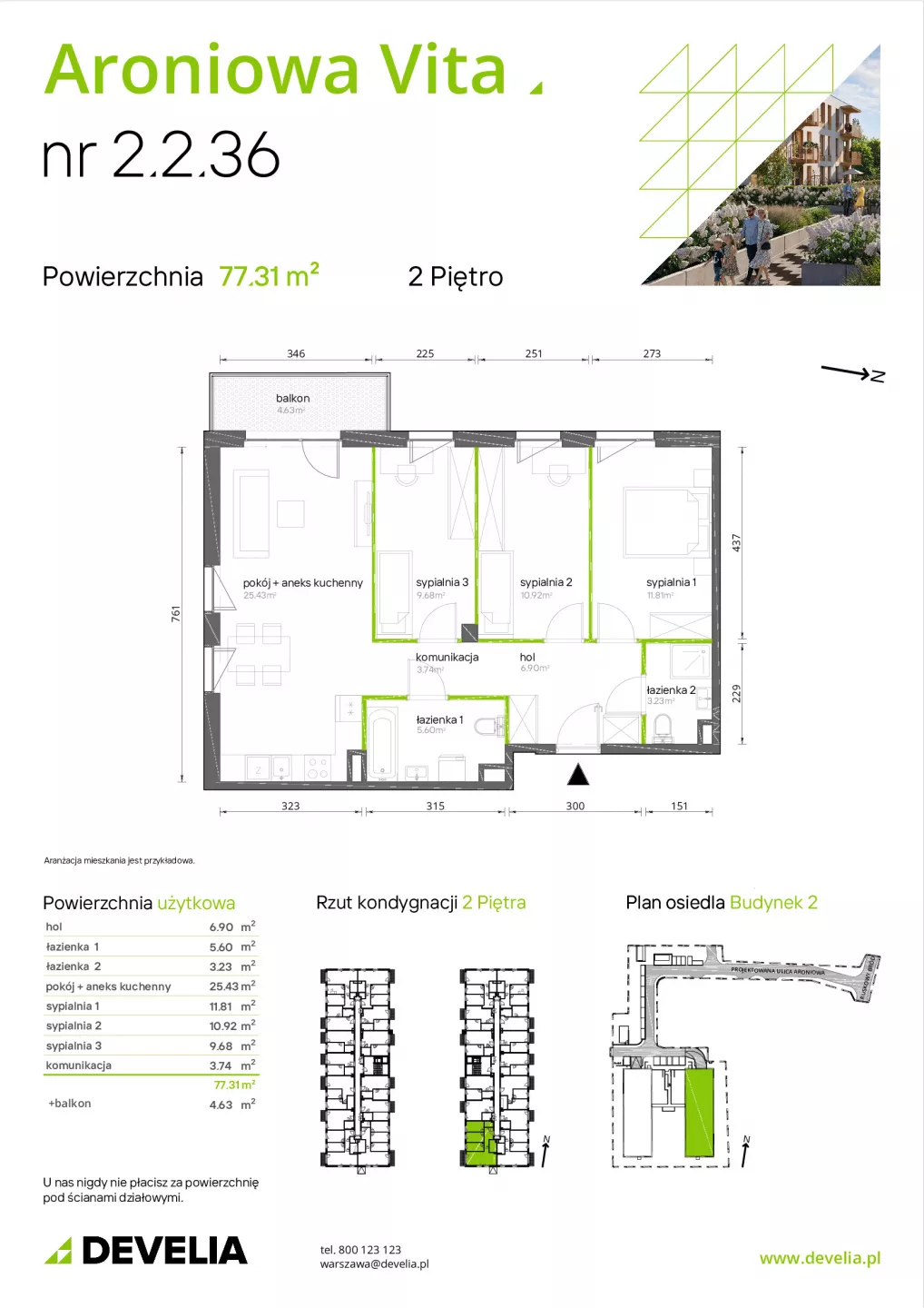 Udogodnienia: niska i elegancka zabudowa, las i liczne tereny rekreacyjne w okolicy, zielona przestrzeń, cicha i spokojna okolica, blisko komunikacji miejskiej Przynależności: ogródek, balkon, taras, loggia Wielkość Projektu: 76 mieszkań Garaże: Na terenie inwestycji przewidziano miejsca postojowe naziemne Komunikacja: W pobliżu inwestycji znajdują się przystanki autobusowe Odległość od Centrum: 20 km
