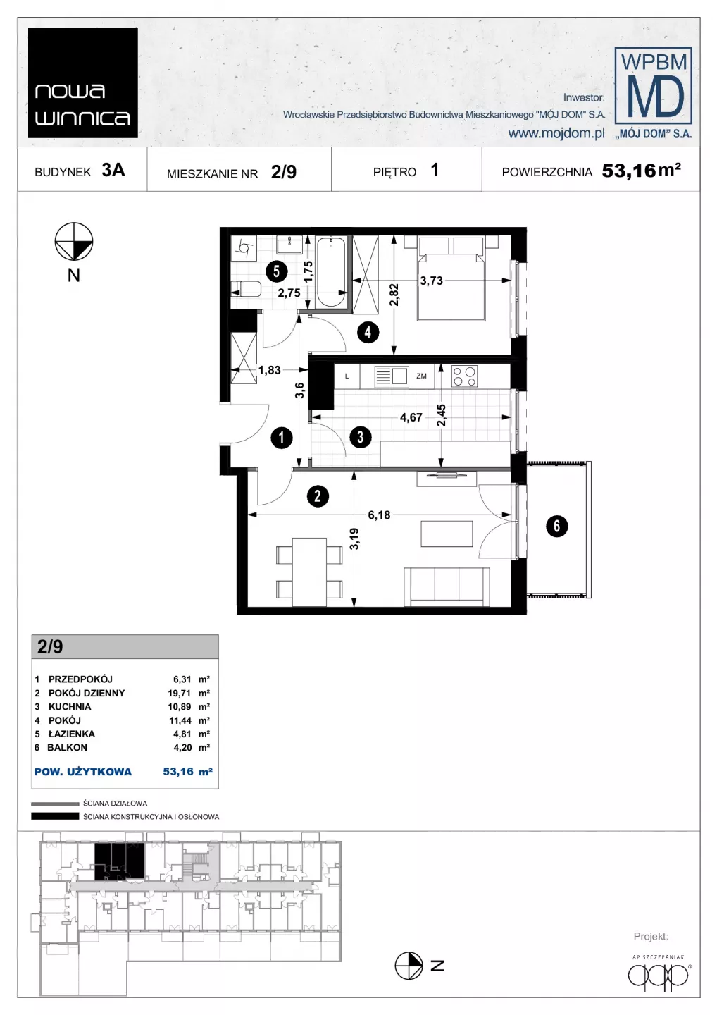 Udogodnienia: W pobliżu inwestycji znajdują się tereny zielone, plac zabaw, obiekty sportowe, stojaki na rowery. Przynależności: Każde mieszkanie posiada balkon lub ogródek. Bezpieczeństwo: Domofon. Wielkość Projektu: Inwestycja posiada 52 mieszkań. Garaże: W inwestycji będą dostępne miejsca postojowe. Komunikacja: 1,7km stacja PKP Odległość od Centrum: 28km.