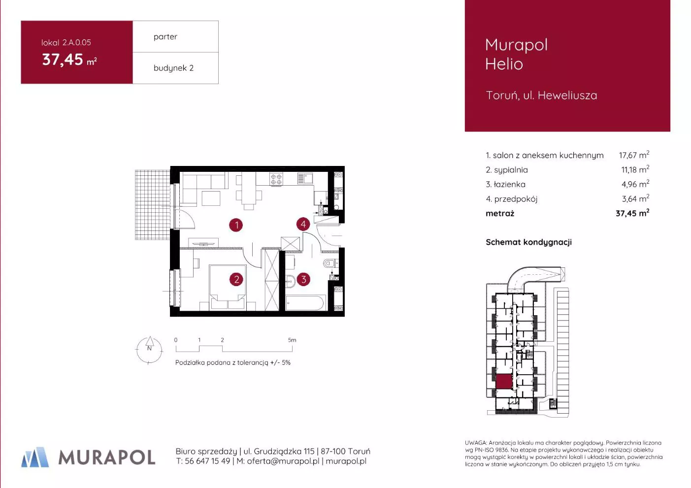 Opis: Kompaktowe 1-, 2- i 3-pokojowe mieszkania oraz zróżnicowane metraże od 26 do nawet 88 mkw. w przypadku lokali z antresolami to doskonała propozycja nie tylko dla rodzin z dziećmi, ale również singli czy par chcących na co dzień być blisko przyrody. Wysokość tych lokali sięga nawet 5,5 m. Dwa budynki, które wyróżnia kameralna i minimalistyczna architektura harmonijnie wkomponowująca się w naturalne otoczenie lasu. Mieszkania na piętrach będą posiadały nawet dwa balkony, a w przypadku wybranych lokali przestronne tarasy o pow. aż do 38 mkw. Udogodnienia: tereny zielone, blisko komunikacji miejskiej i centrum miasta, Smart Home (korzystanie z urządzeń Smart Home za pomocą aplikacji mobilnej, jak i manualnie. Możliwe jest m.in. sterowane ogrzewaniem, oświetleniem czy zaworami wody), winda, lokale usługowe, pakiet antysmogowy (zabezpieczenie przeciw zanieczyszczeniami, alergenami, pyłkami roślin czy owadami), stacja ładowania aut elektrycznych, stojaki rowerowe, oświetlenie LED części wspólnych Przynależności: Wybrukowane kostką tarasy z zielonymi ogródkami o powierzchni nawet 60 mkw. będą przynależeć do wszystkich mieszkań na parterach, balkon, miejsce postojowe Bezpieczeństwo: domofon, monitoring, drzwi antywłamaniowe, teren zamknięty Wielkość Projektu: 128 mieszkań Garaże: Deweloper przewidział miejsca postojowe dla mieszkańców inwestycji. Komunikacja: stacja kolejowa Toruń Katarzynka znajduje się w odległości 10-minutowej przejażdżki rowerem. przy nowej pętli tramwajowej „Heweliusza”. Trasa do placu NOT zajmuje stąd zaledwie 20 min liniami nr 6 lub nr 3. Odległość od Centrum: 7,5 km (ok 20min samochodem)
