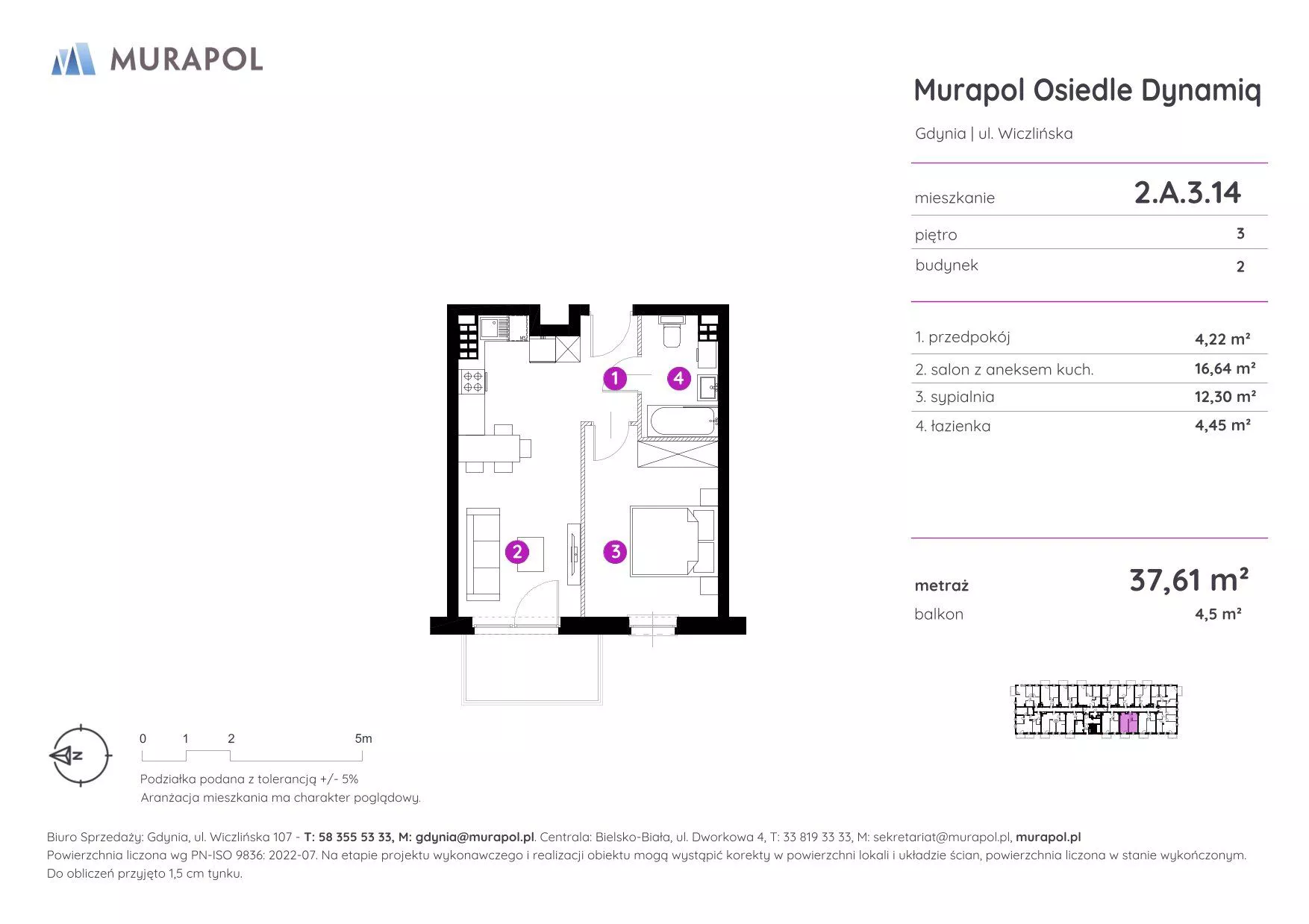 Udogodnienia: nowoczesna architektura, wysoki standard wykończenia, winda, stacja ładowania samochodów elektrycznych, pakiet antysmogowy, smart home, komórki lokatorskie, strefa rekreacyjna z placem zabaw, rowerownie, lokale usługowe na parterze, tereny zielone - Trójmiejski Park Krajobrazowy i Leśny Ogród Botaniczny Marszewo, blisko komunikacji miejskiej i centrum miasta; w pobliżu znajdują się siłownia, klub fitness, Bular Nadmorski, molo i klif w Orłowie, galeria handlowa Riviera oraz centra handlowe Witawa i Parkova Przynależności: balkon, taras z ogródkiem Bezpieczeństwo: drzwi antywłamaniowe, domofon, teren ogrodzony Wielkość Projektu: 228 mieszkań Garaże: Na terenie inwestycji powstaną miejsca postojowe naziemne i podziemne Komunikacja: obok inwestycji znajdują się przystanki autbusowe Odległość od Centrum: 10 km