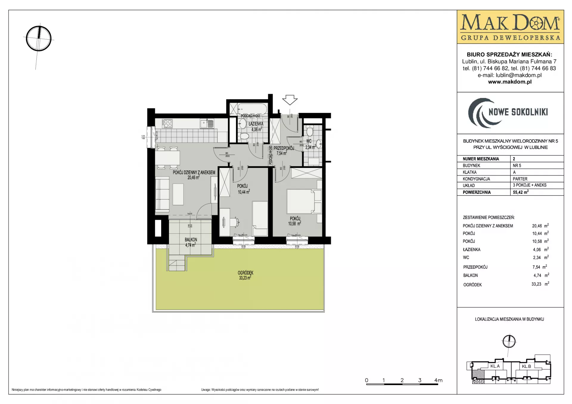 Udogodnienia: W pobliżu inwestycji znajdują się punkty usługowe, handlowe, rekreacyjno-wypoczynkowe jak również placówki edukacyjne. Przynależności: Mieszkania posiadają balkon, taras lub ogródek. Deweloper przewidział również komórki lokatorskie. Bezpieczeństwo: domofon, drzwi antywłamaniowe Wielkość Projektu: Całość projektu to obszar o niskiej zabudowie, który składa się z siedmiu budynków. W budynku nr 5 oferujemy 60 mieszkań. Garaże: W inwestycji będą miejsca postojowe podziemne i naziemne. Komunikacja: Autobus 450 metrów. Odległość od Centrum: 3 km.