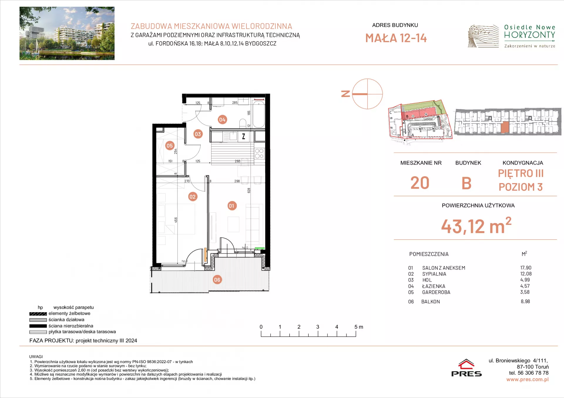 Udogodnienia: Nowe Horyzonty to innowacyjne rozwiązania m.in stacja zmiękczania wody, fotowoltaika na dachach zasilająca części wspólne, ekologiczne i automatyczne wykorzystanie wody deszczowej do podlewania, ograniczenie ruchu samochodowego na terenie osiedla (ok. 90% samochodów w halach garażowych podziemnych), stanowisko zewnętrzne do ładowania samochodów elektrycznych oraz możliwość doprowadzenia do każdego stanowiska instalacji do ładowania samochodów. Biedronka po drugiej stronie ulicy 207m, szkoła podstawowa, żłobek, przedszkole, park przy Balatonie, Fabryka Tańca.. Planowane prywatne przedszkole na terenie osiedla. Wyróżnik inwestycji: Lokalizacja blisko zieleni wraz z bulwarem tuż przy rzece Brdzie. Dobra okazja inwestycyjna pod najem długo-, jak i krótkoterminowy. Przynależności: Wózkownie, komórki i schowki. Balkon w każdym mieszkaniu. Tarasy i ogródki. Siłownia na świeżym powietrzu, tężnia solankowa. Docelowo ma być boisko Orlik (koszykówka, piłka nożna).Altany wraz z grillem. Górka saneczkowa. Zielony tunel. Naturalny plac zabaw. Bezpieczeństwo: Drzwi antywłamaniowe o podwyższonej izolacji akustycznej. Wideodomofony, monitoring zewnętrzny i hali garażowej.. Wielkość Projektu: 3 budynki wielorodzinne 7-piętrowe. I etap 149 mieszkań. Komórki lokatorskie. Garaże: Na terenie inwestycji powstaną 32 naziemne i 78 podziemne miejsca postojowe. Komunikacja: W pobliżu projektu znajdują się bardzo blisko przystanki autobusowe i tramwajowe. Dworzec PKS 4km, PKP Bydgoszcz Główna 5,2km Odległość od Centrum: 3,4km (ok. 6min samochodem). Szczegóły: Wysokość pomieszczeń 2,65m. Standard deweloperski.