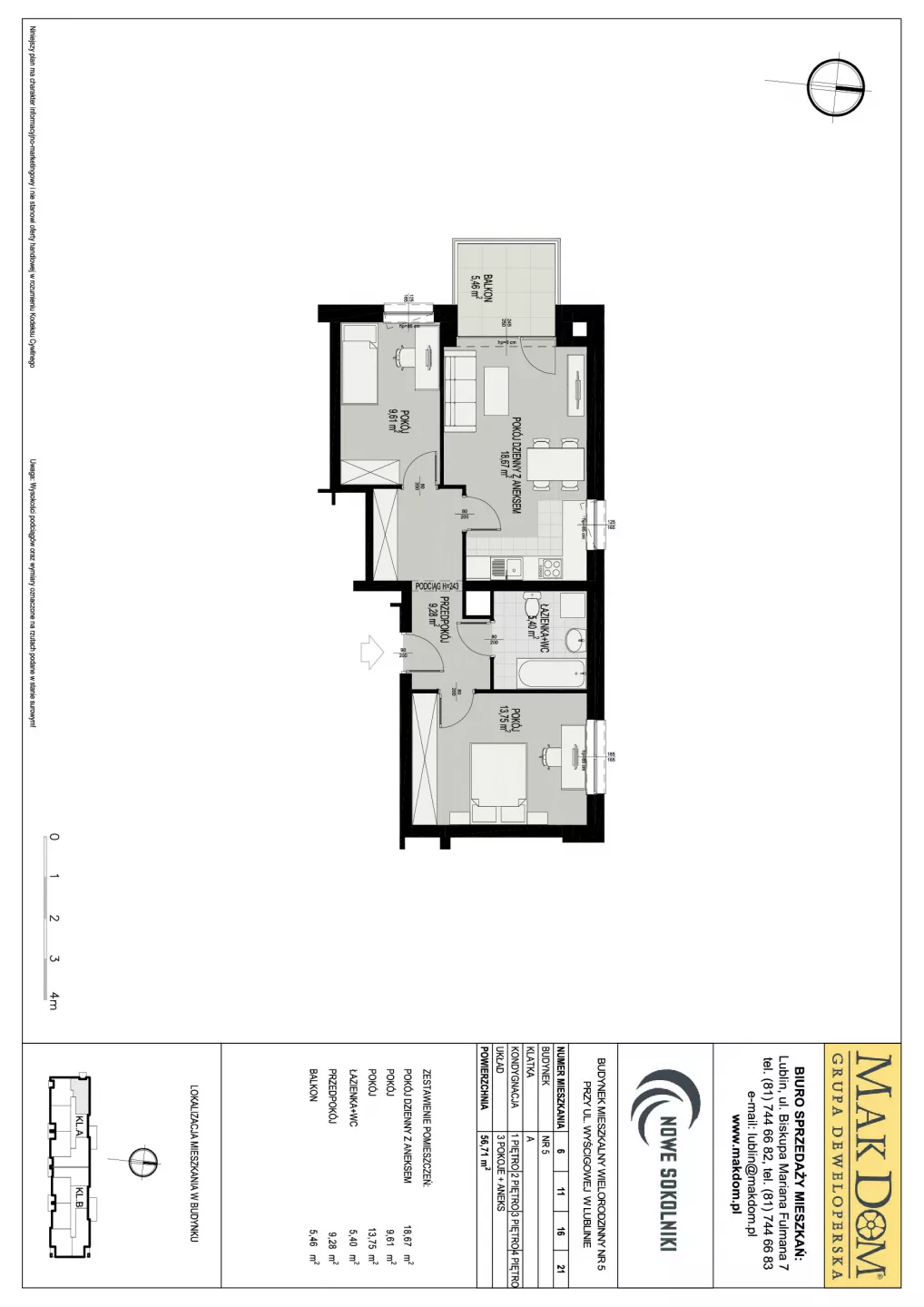 Udogodnienia: W pobliżu inwestycji znajdują się punkty usługowe, handlowe, rekreacyjno-wypoczynkowe jak również placówki edukacyjne. Przynależności: Mieszkania posiadają balkon, taras lub ogródek. Deweloper przewidział również komórki lokatorskie. Bezpieczeństwo: domofon, drzwi antywłamaniowe Wielkość Projektu: Całość projektu to obszar o niskiej zabudowie, który składa się z siedmiu budynków. W budynku nr 5 oferujemy 60 mieszkań. Garaże: W inwestycji będą miejsca postojowe podziemne i naziemne. Komunikacja: Autobus 450 metrów. Odległość od Centrum: 3 km.